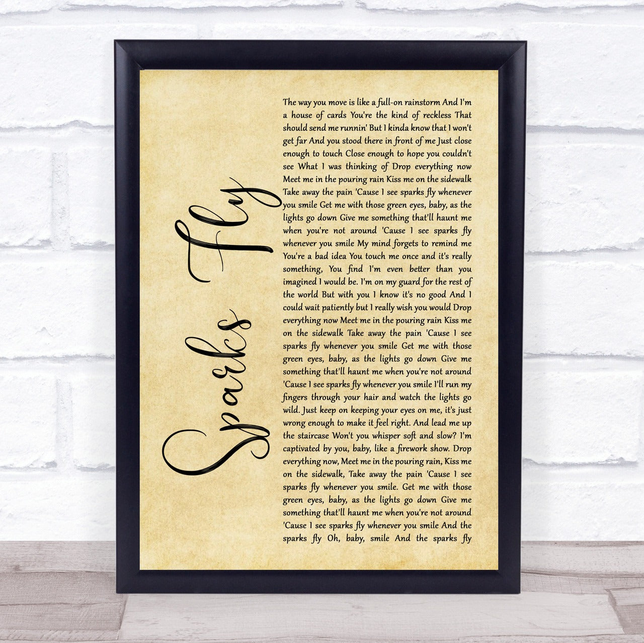 Sparks Fly Canvas Wall Art With Song Lyrics, Rustic Script Song Lyric Music Canvas, Gift For Swifties