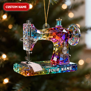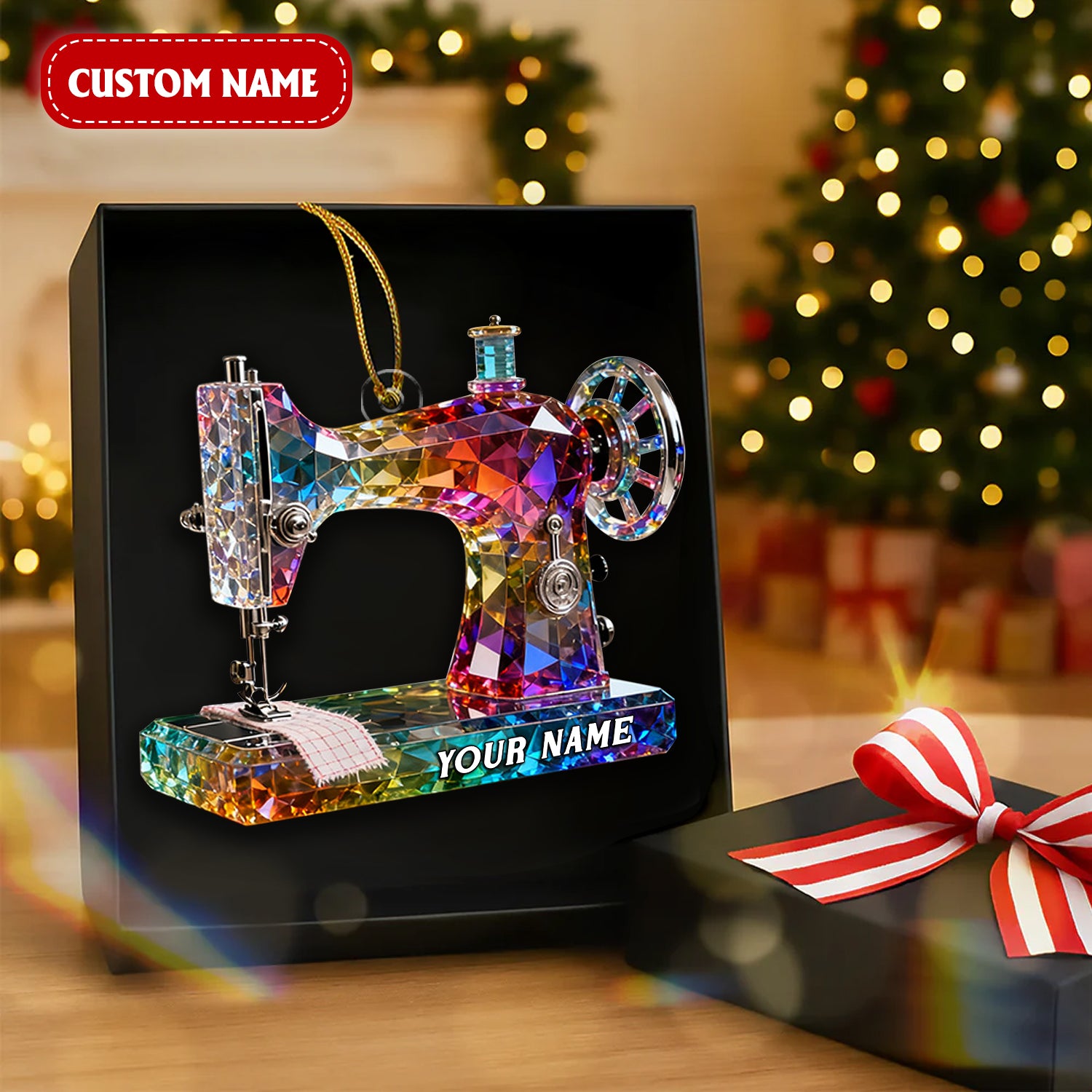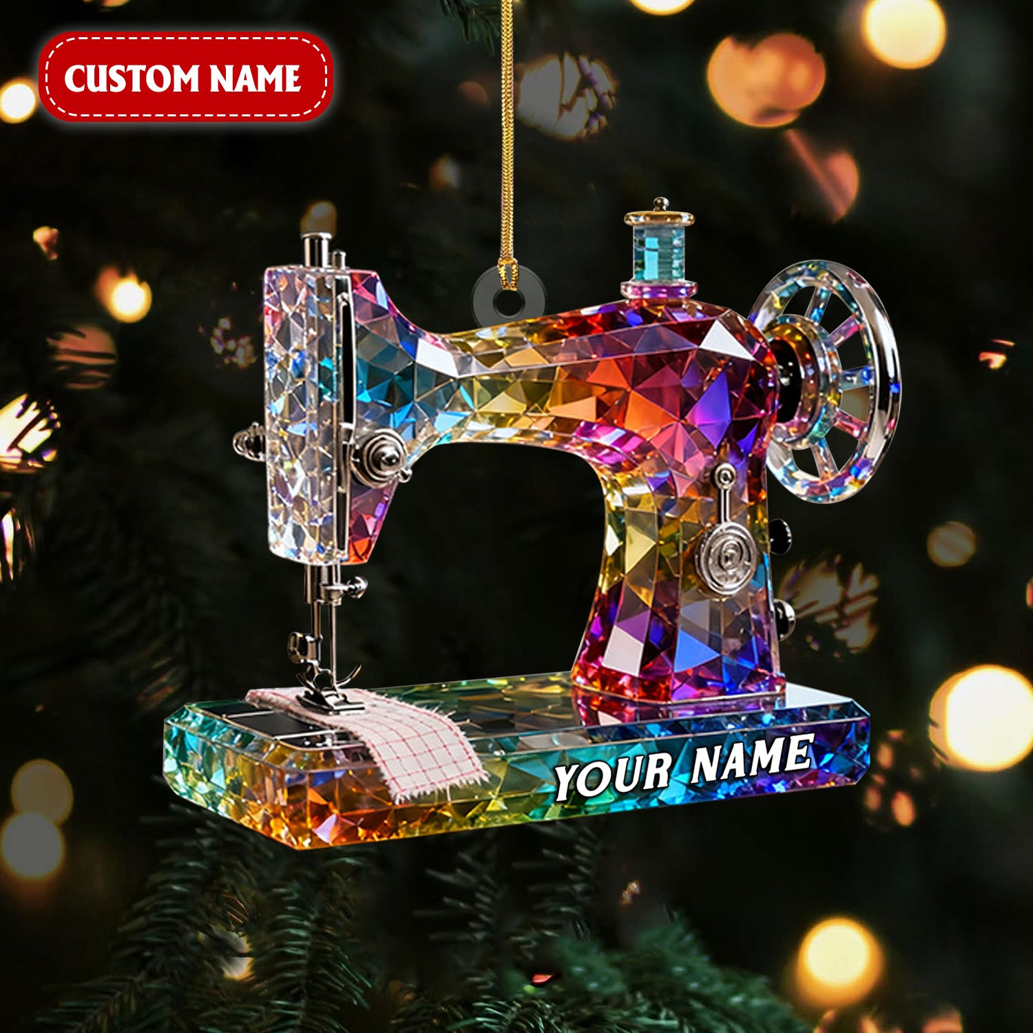 Stained Glass Effect Sewing Machine Custom Name Acrylic Christmas Ornament, Seamstress Gift, Xmas Decor
