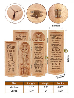 Dad Gifts, To Our Bonus Dad, Personalized Openable Wooden Cylinder Sculpture of Jesus Christ, Christ Decor