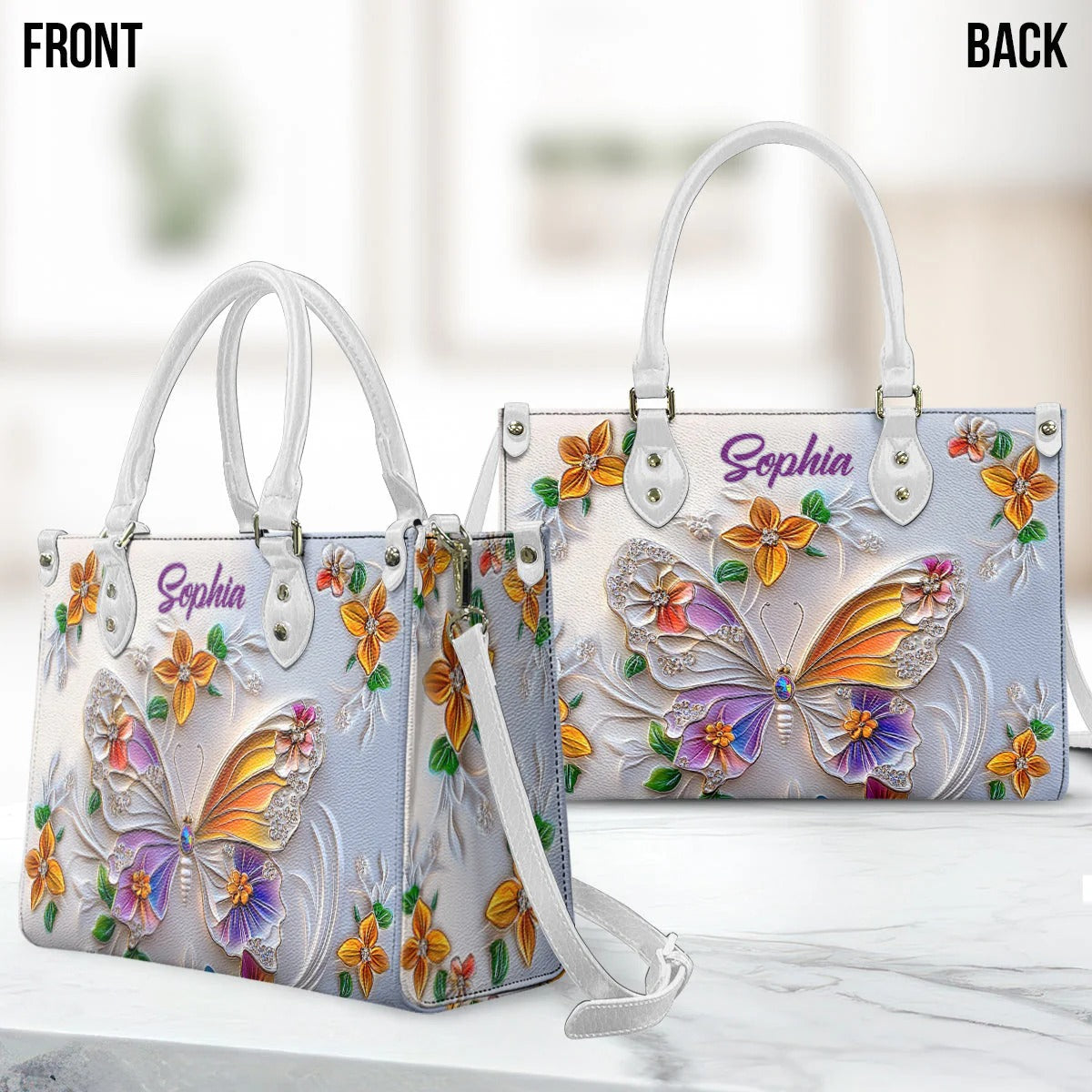 Stunning Butterfly - Personalized Butterfly Leather Handbag - Boho Handbag Gift for Her - Leather Shoulder Bag