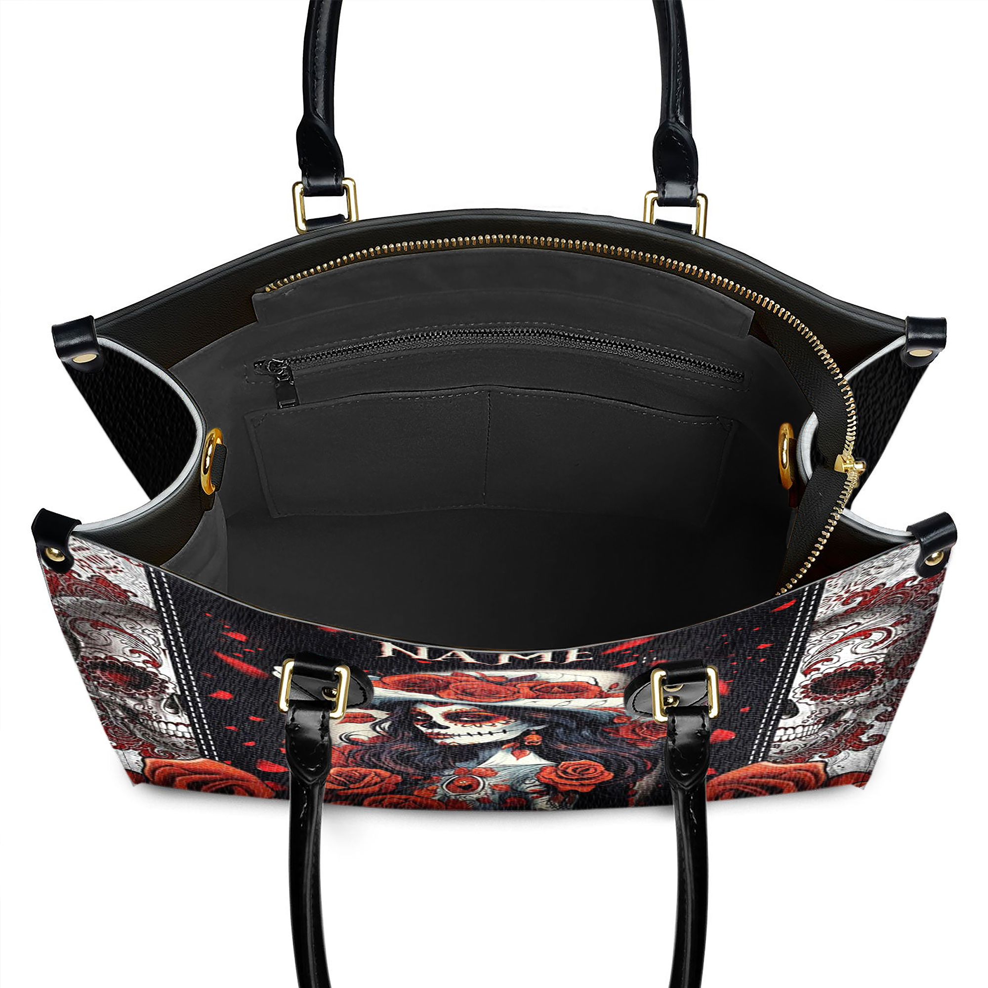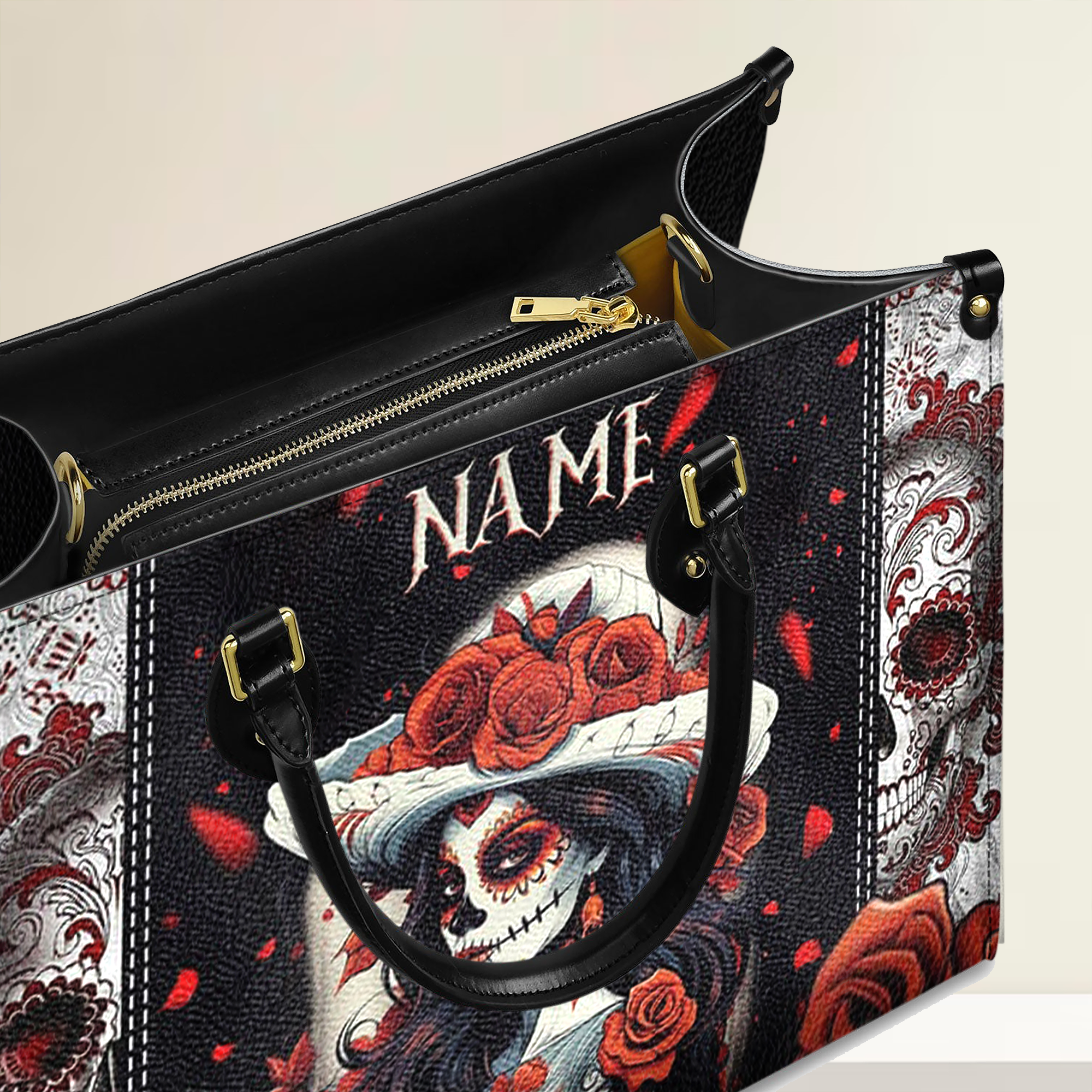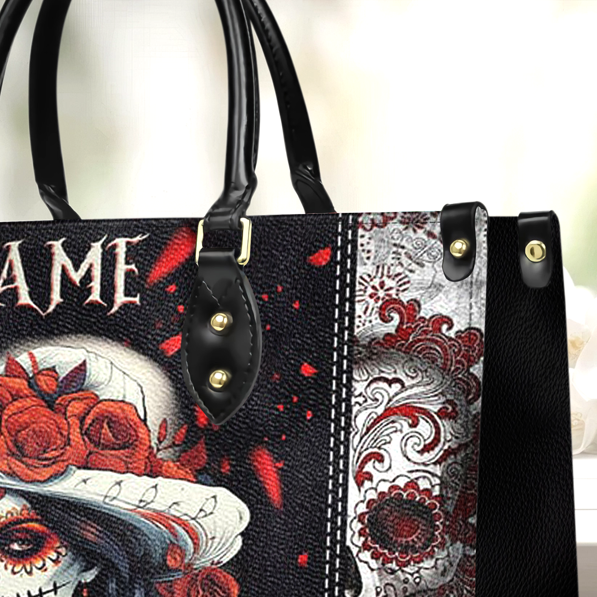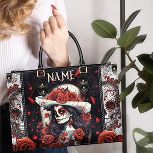 Sugar Skull Personalized Leather Handbag, Gifts For Punk Lovers, Gothic Gifts