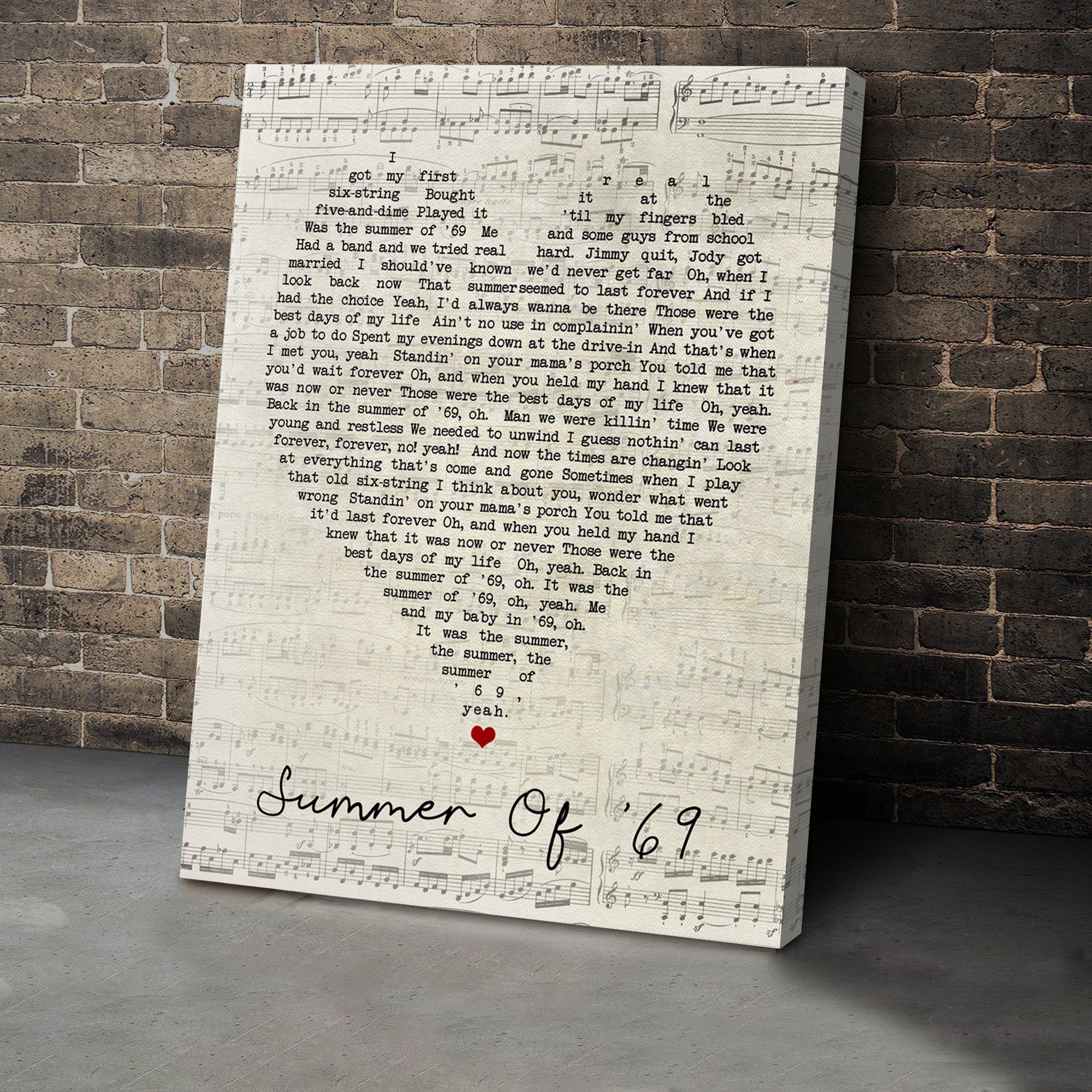 Summer Of '69 Bryan Adams Script Heart Song Lyric Art Print Canvas Print Frames
