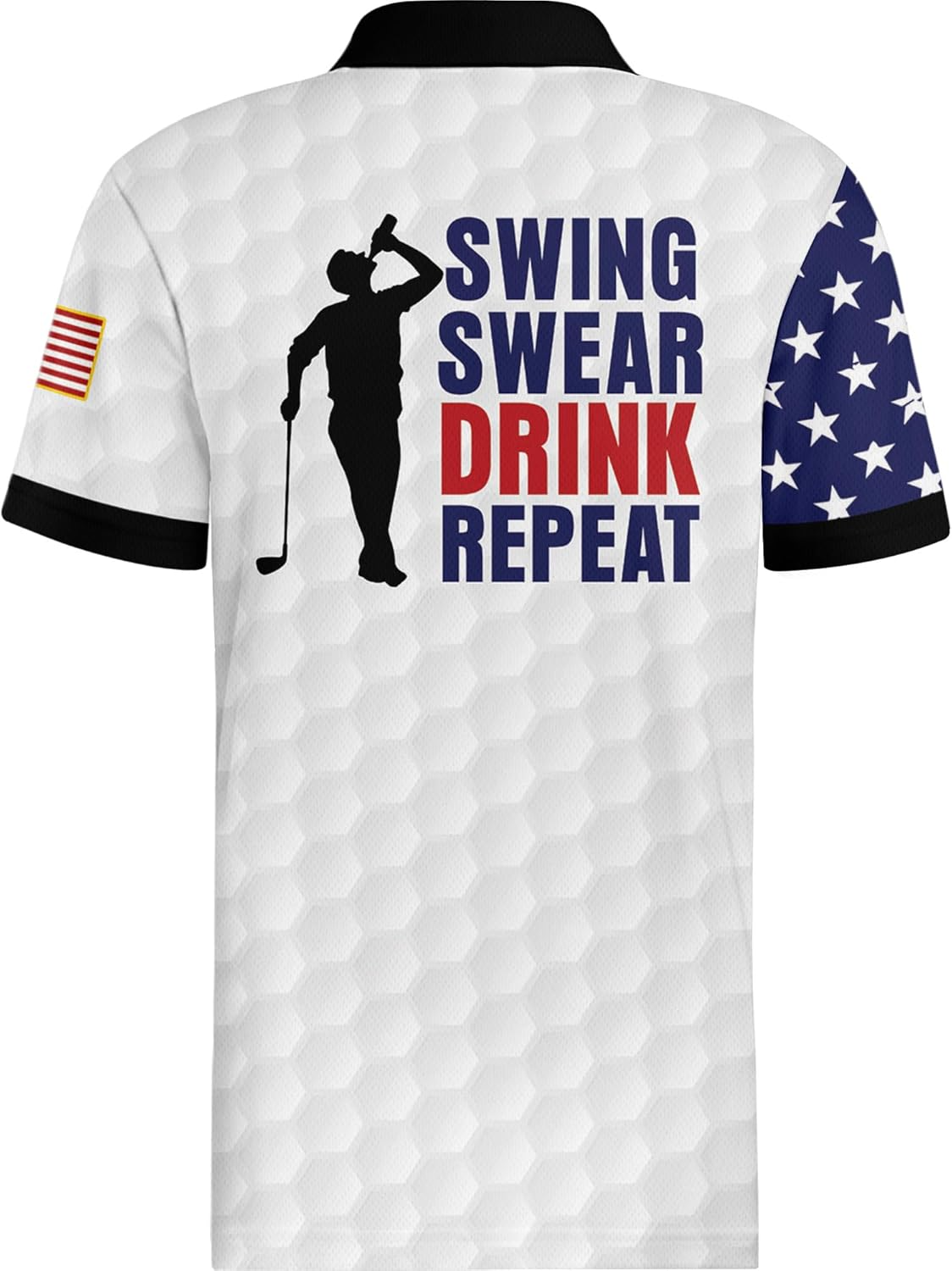 Swing Swear Drink Repeat Patriotic American Flag Golf Polo Shirts, Golf Gift For Men, Golf Shirts For Men