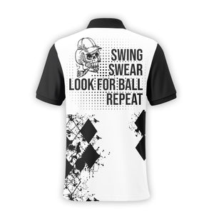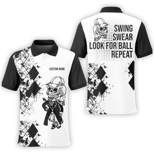 Swing Swear Repeat Skull Golf Shirt, Custom Name Polo Shirt, Present For Golfer