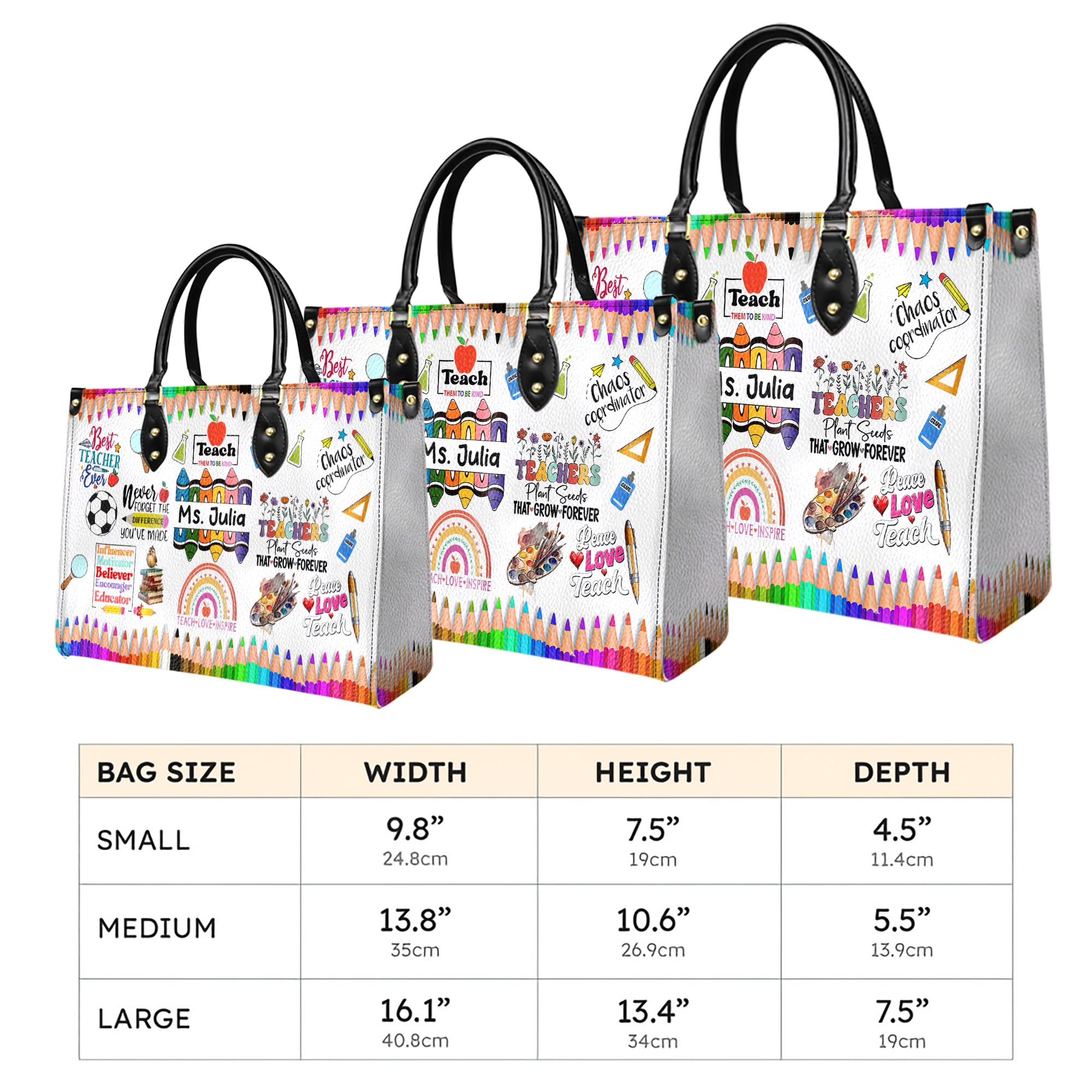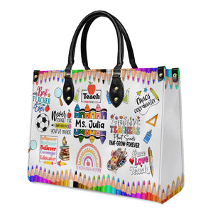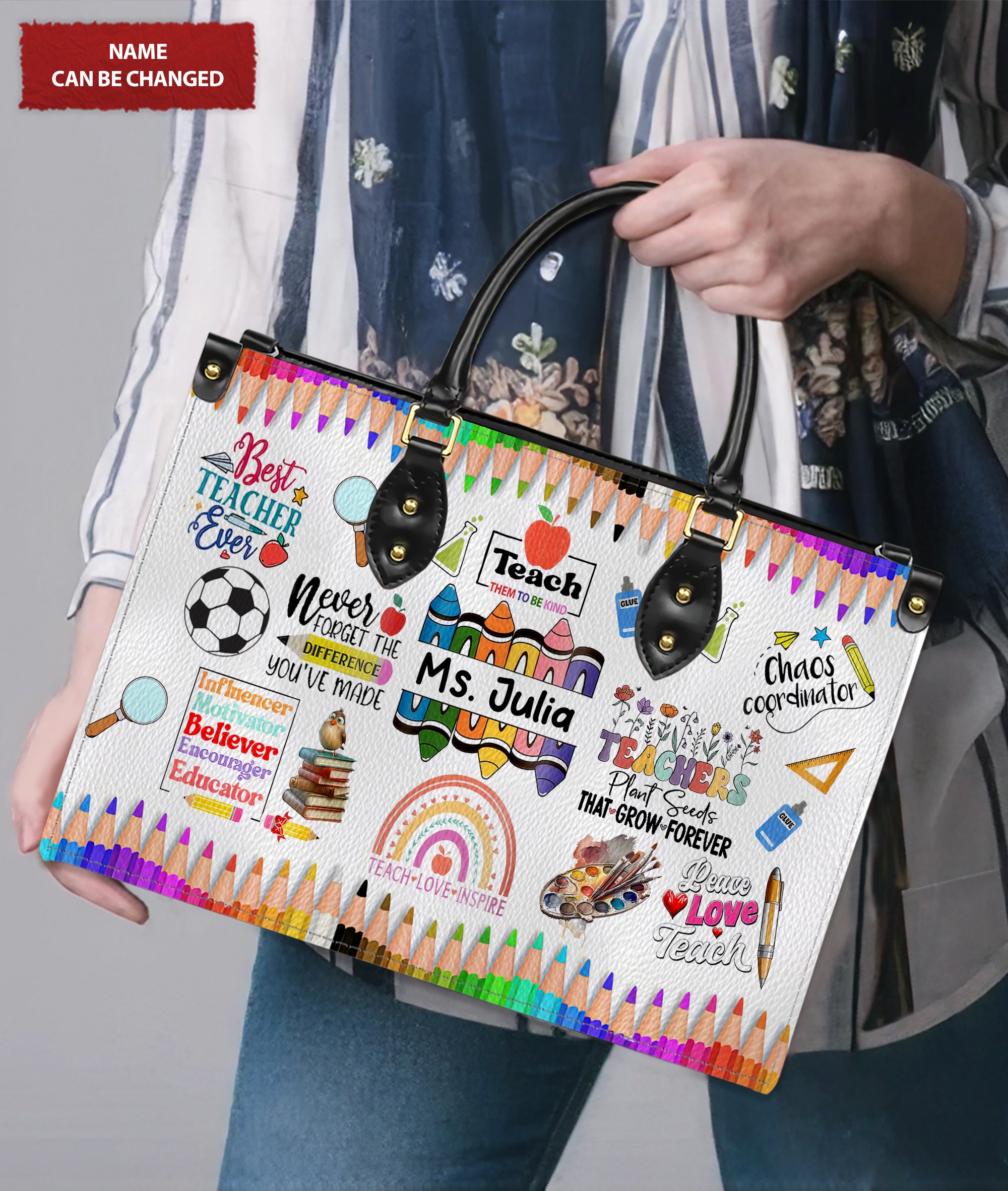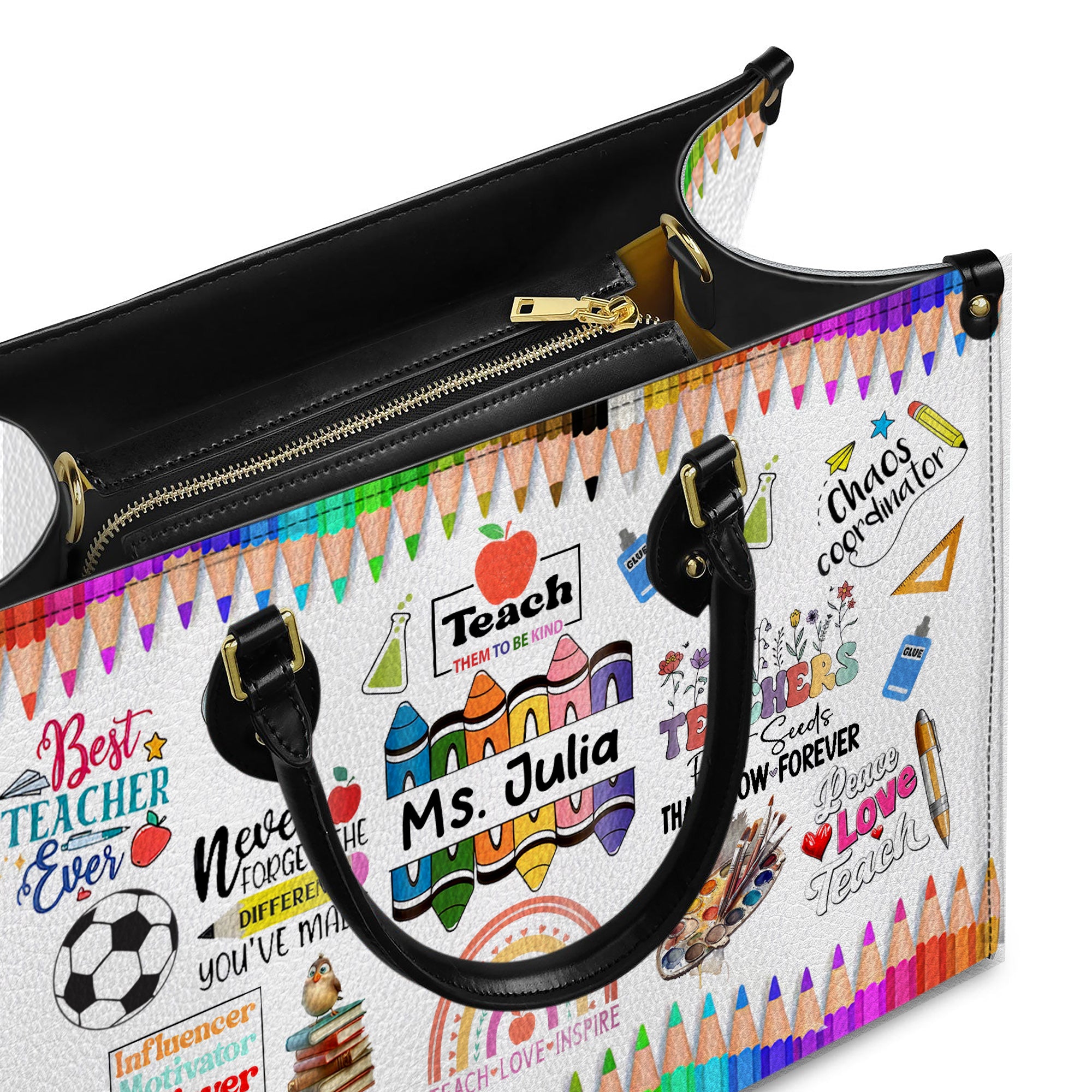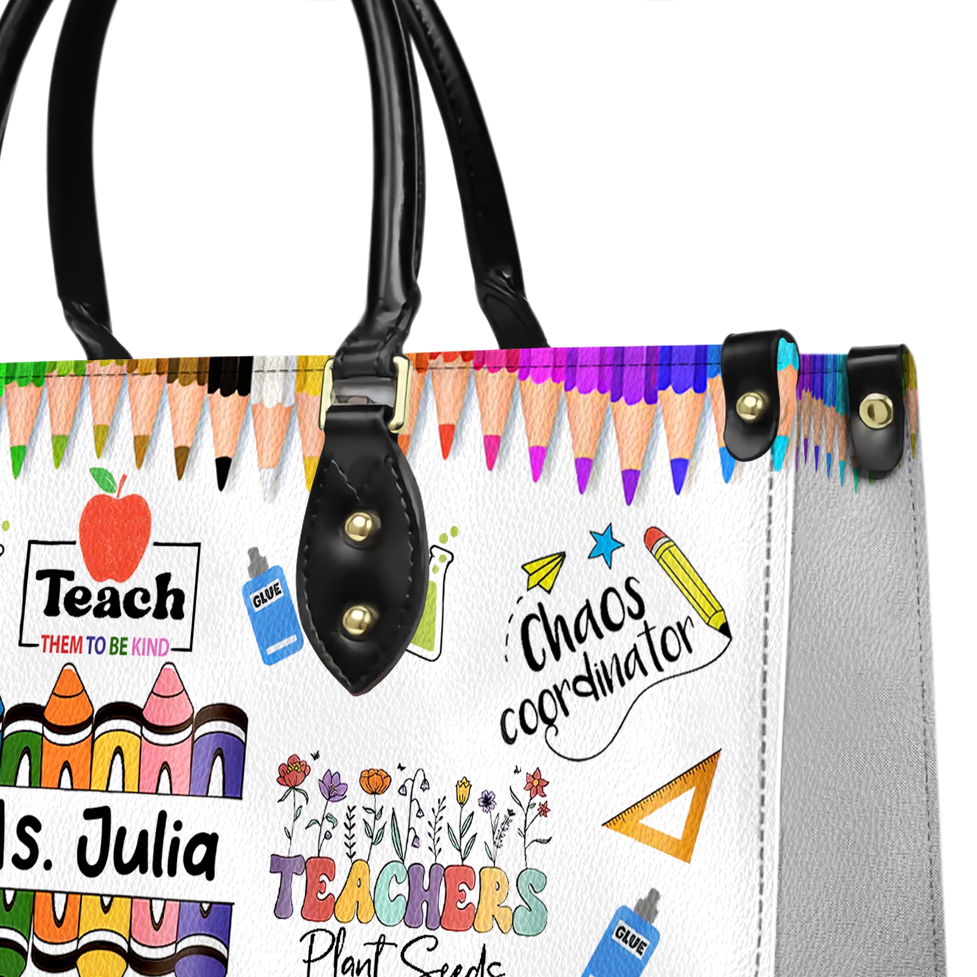 Teach Them To Be Kind Personalized Elementary Teacher Leather Handbag, Teacher Appreciation Gifts