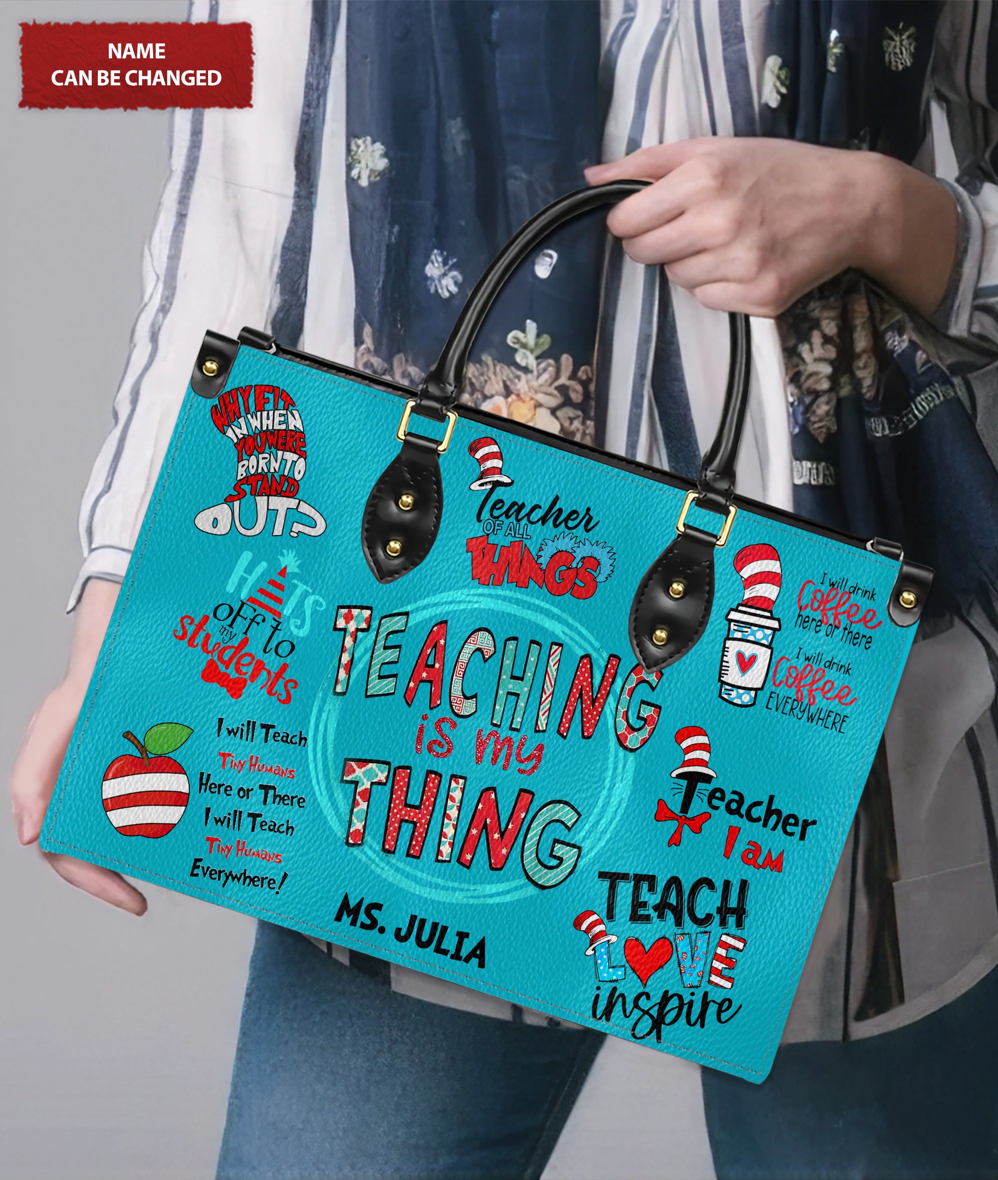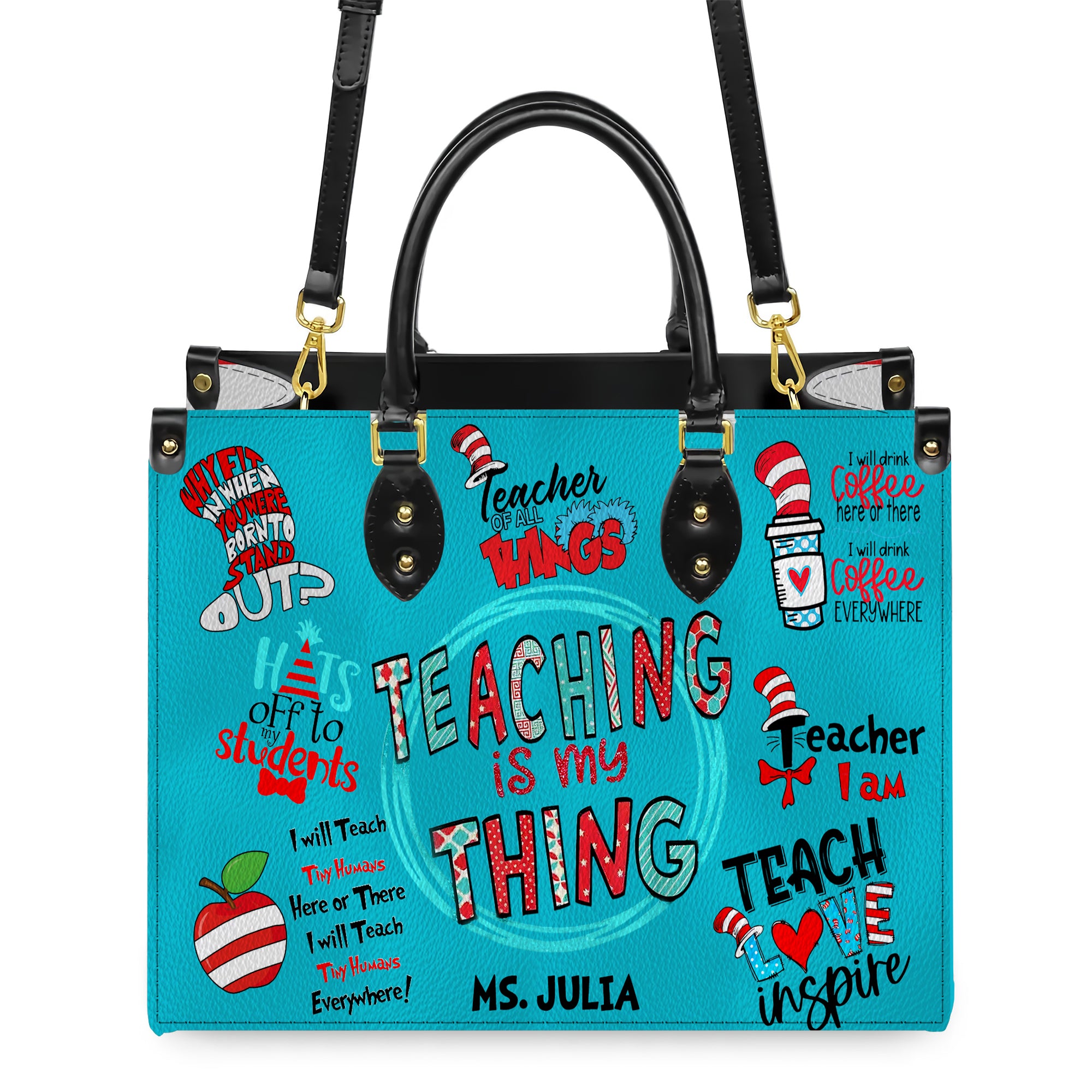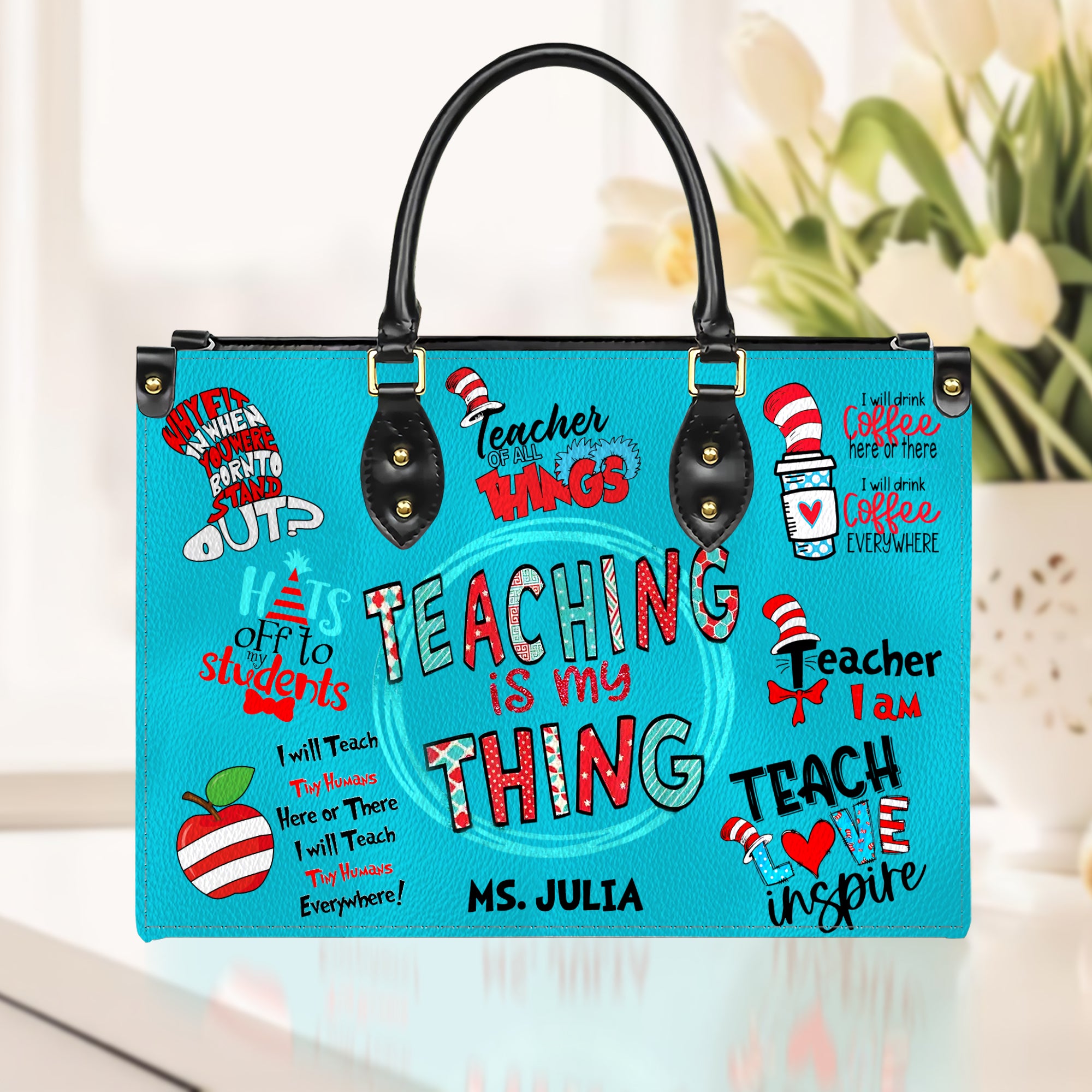 Teaching Is My Thing Personalized Elementary Teacher Leather Handbag, Teacher Appreciation Gifts