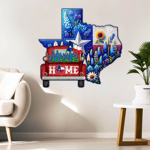 Texas Home Bluebonnet With Car Hanging Metal Sign, Texas Wall Art, Home Wall Decor, Garden Decor