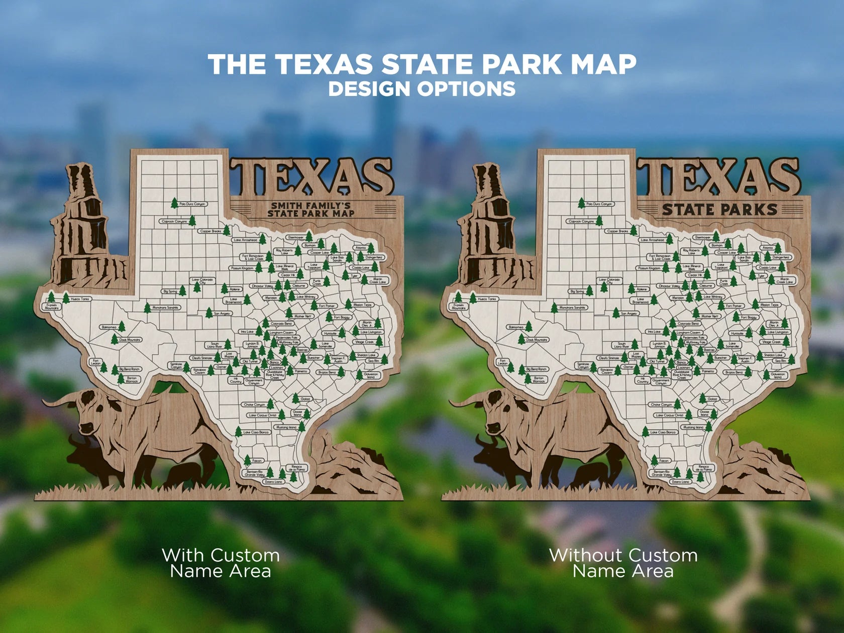 Embark on a journey through the beauty of America's state parks with the Texas State Park Explorer Map. This handcrafted map is your canvas to showcase the diverse landscapes and adventures you have experienced. With a captivating outdoor theme background featuring everything your state has to offer, each map can be customized by adding a family name, creating a unique reflection of your outdoor exploration. This customization makes it an ideal gift or cherished family keepsake.
