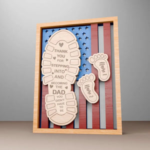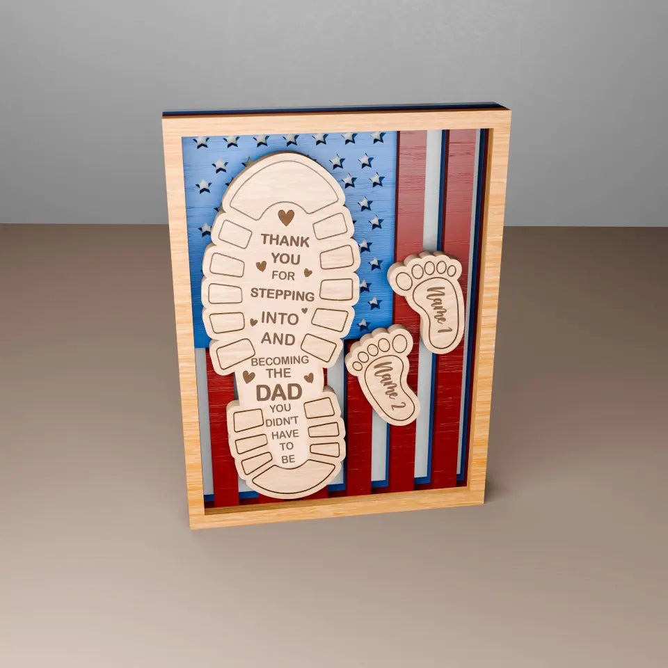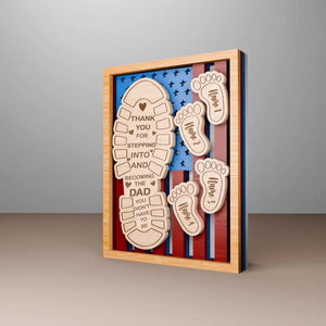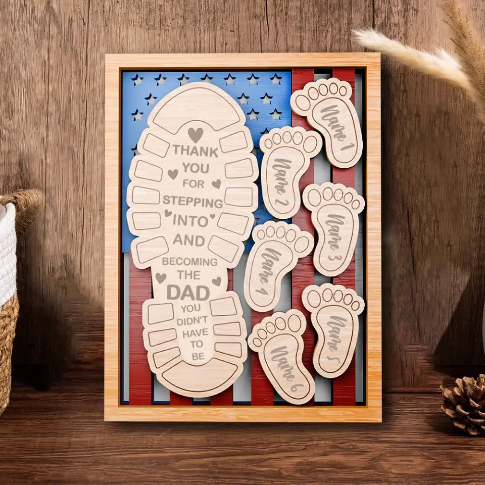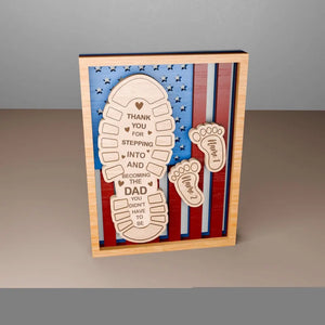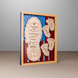 Thank You For Stepping Into And Becoming The Dad Personalized 2 Layered Wooden Sign, Custom Footprints Gift, Gifts For Dad