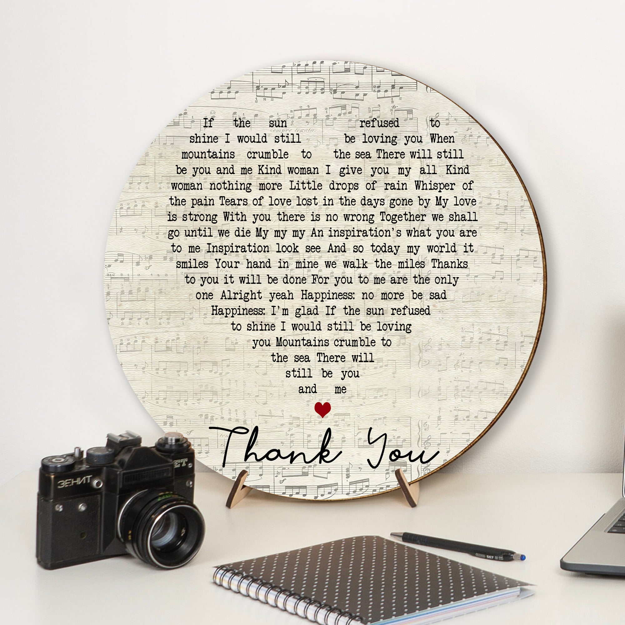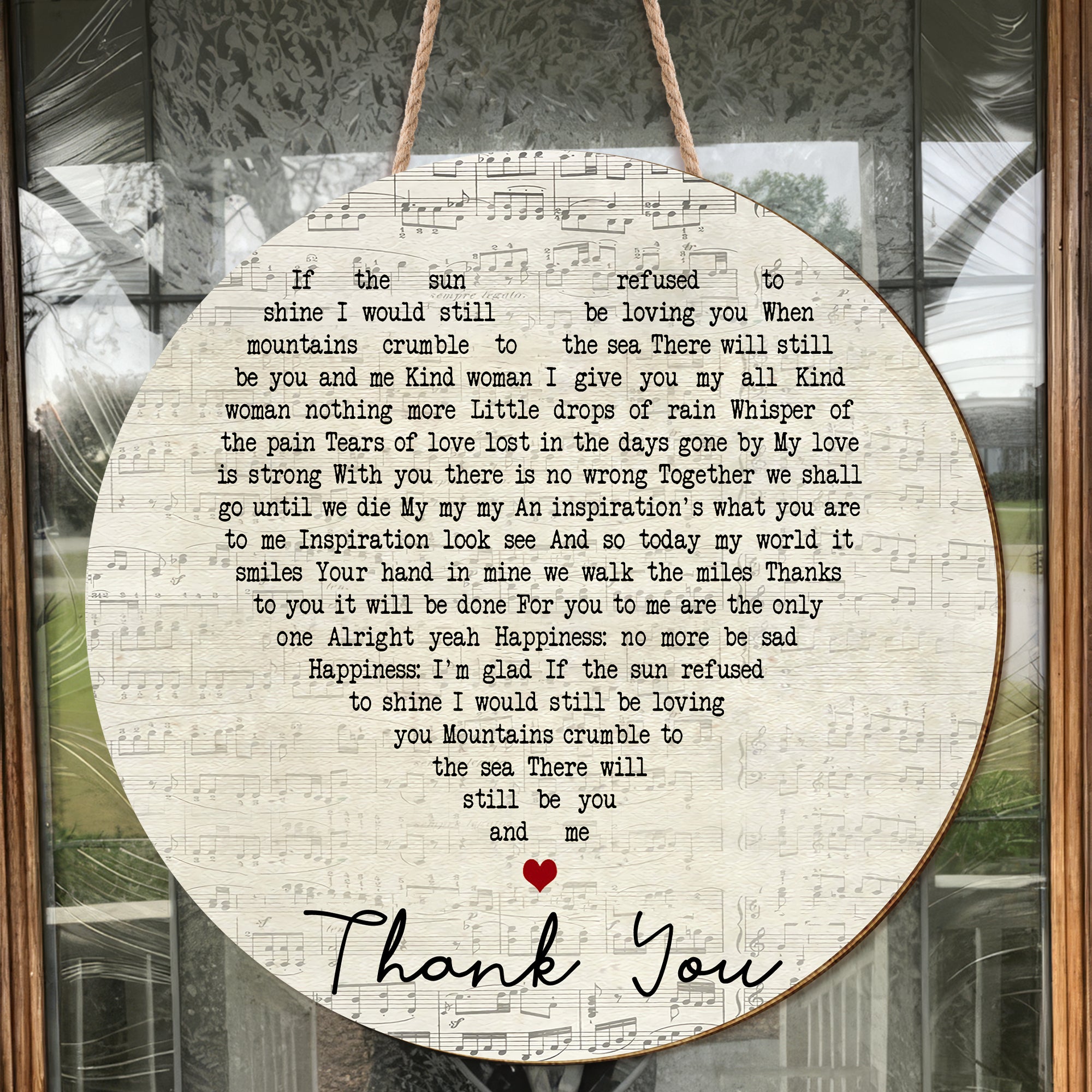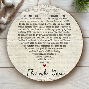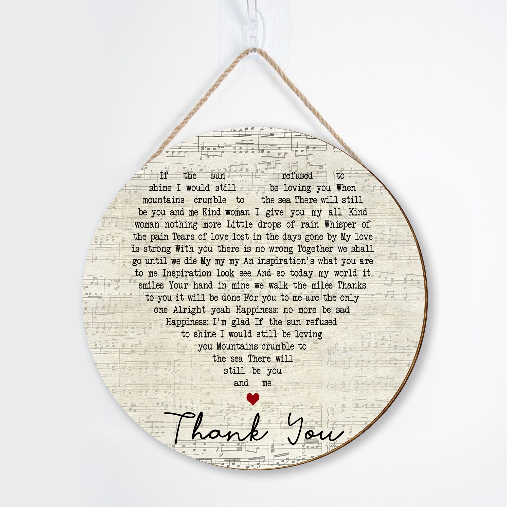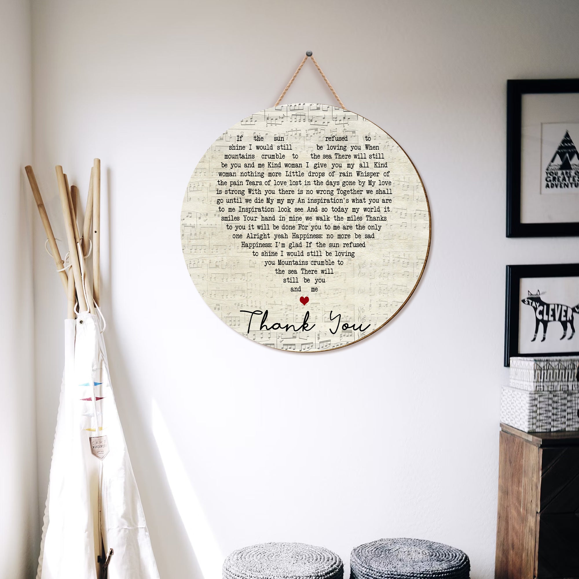 Thank You Script Heart Song Lyric Art Print Round Wood Sign, Wood Signs For Home