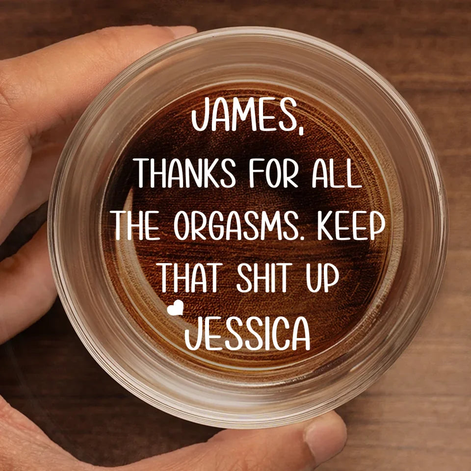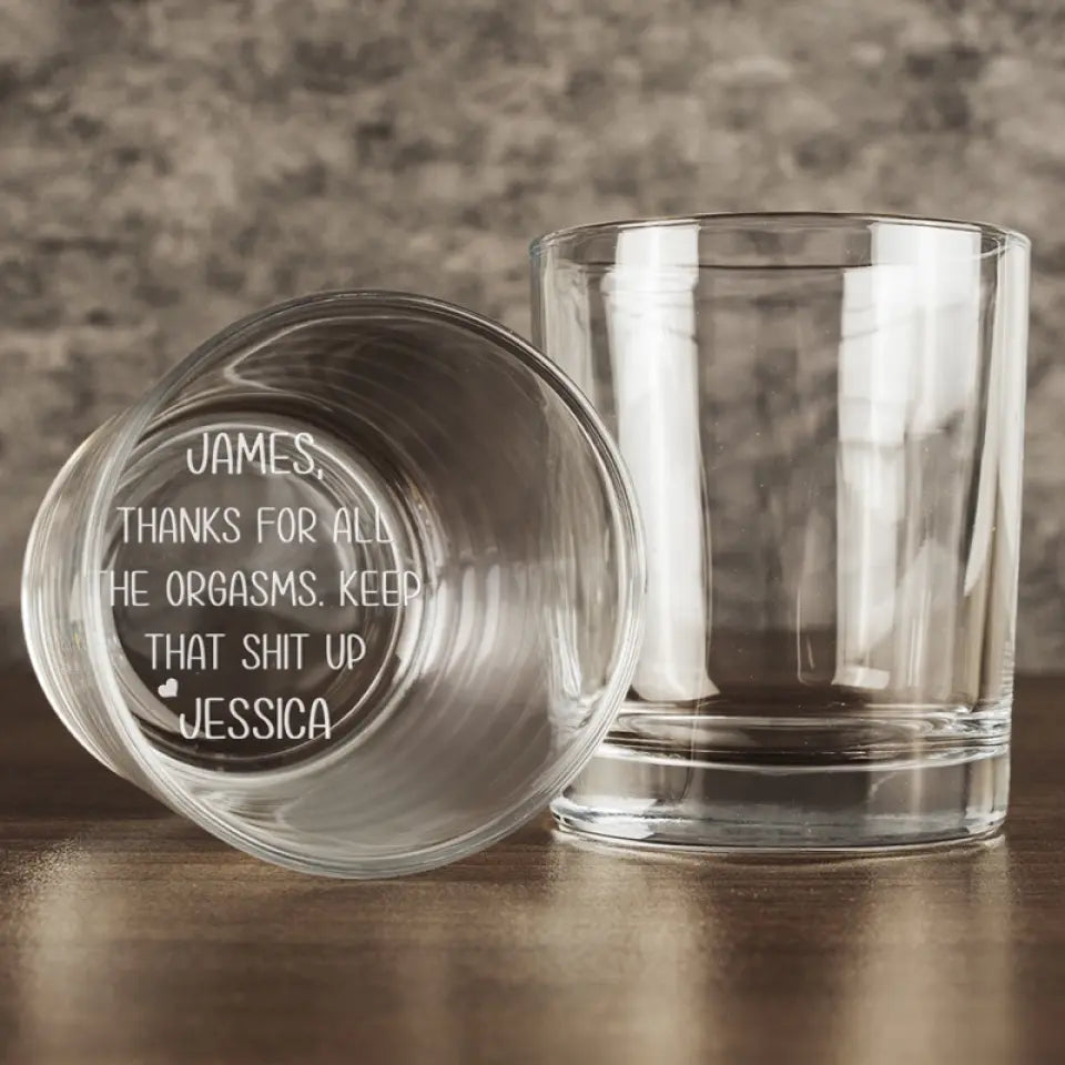 Celebrate your relationship with a touch of humor and style with the Thanks For All Couple Whiskey Glass. Perfect for the couple who loves to share a drink together, this glass is a fun and unique Valentine’s Day gift for him. Whether he's a whiskey lover, wine connoisseur, or enjoys a good cocktail, this glass is the ideal choice for a relaxing drink. Featuring a witty and playful design, it adds a personal touch to your gift-giving. This glass will not only enhance his drinking experience but also remind him of your love and the fun moments you share together.