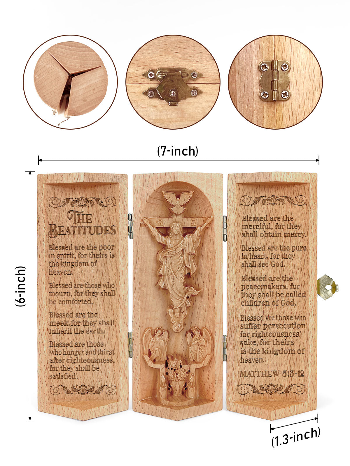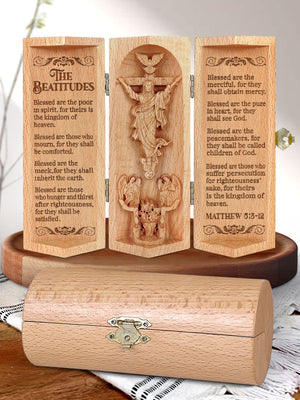The Beatitudes, Openable Wooden Cylinder Sculpture of Jesus Christ, Christian Gifts