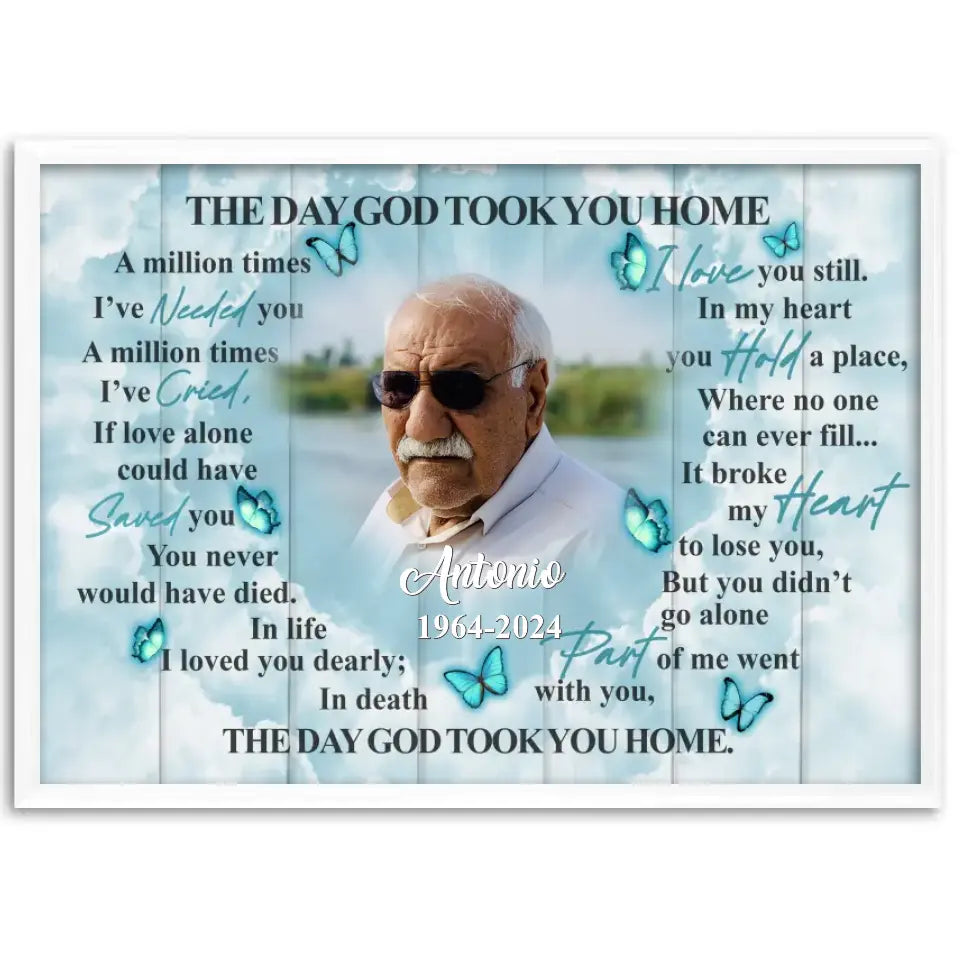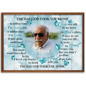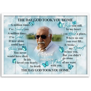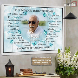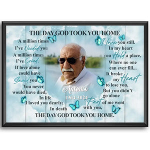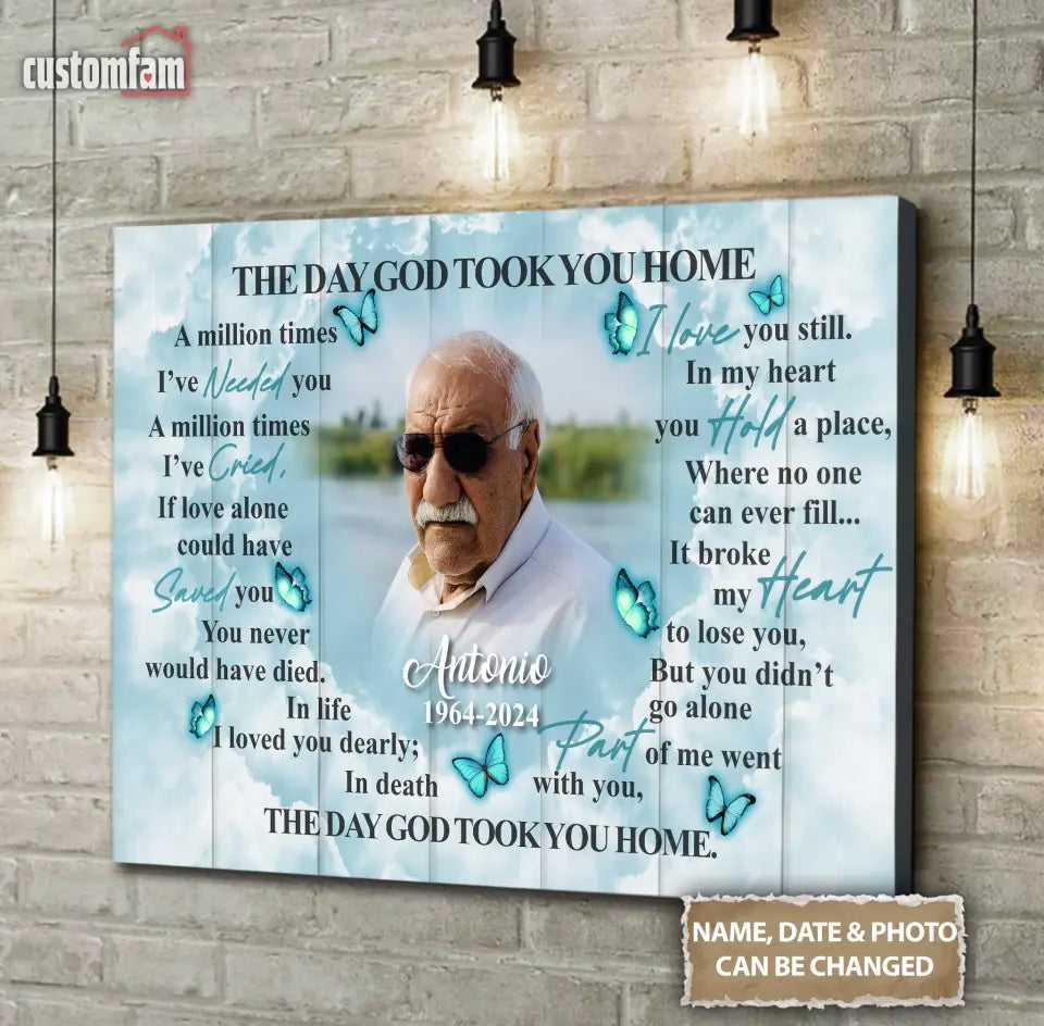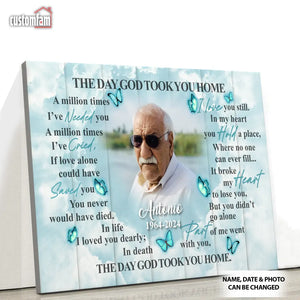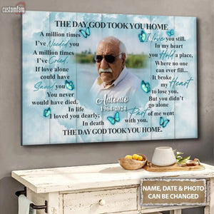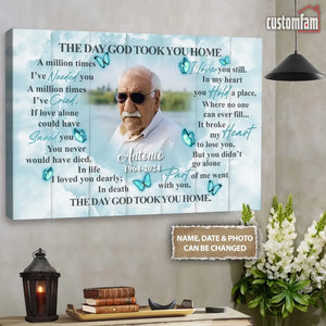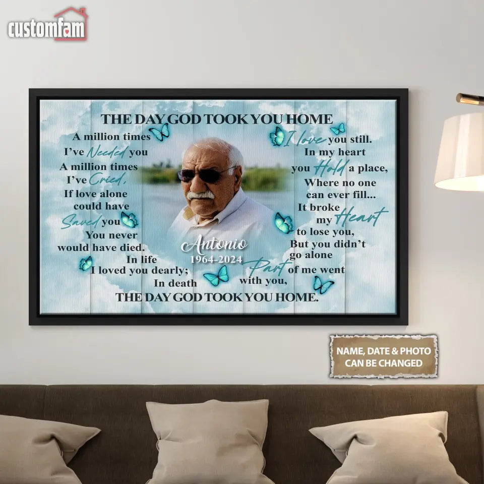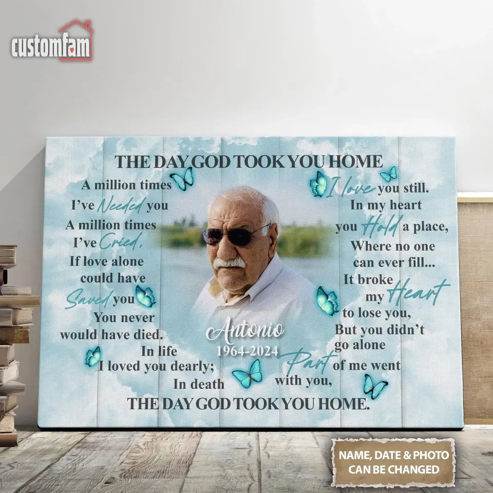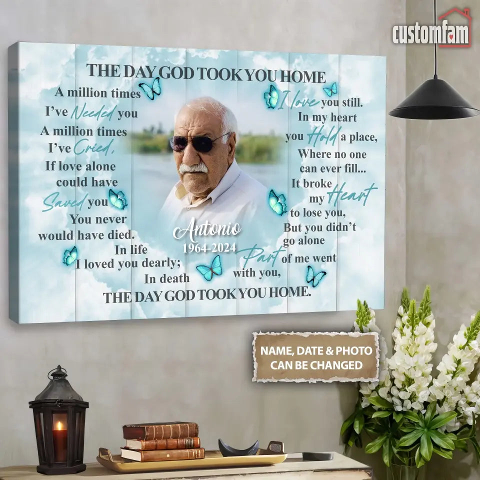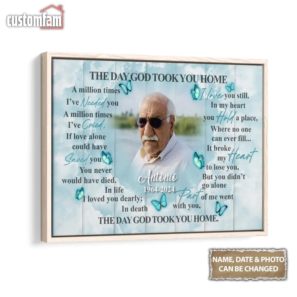 The Day God Took You Home Personalized Canvas Prints, Custom Portrait Photo Memorial Framed Canvas, Loss Of Dad Gift, Remembrance Gifts