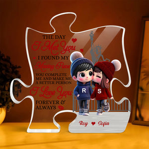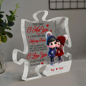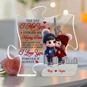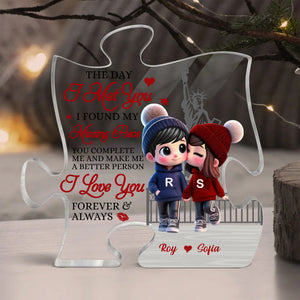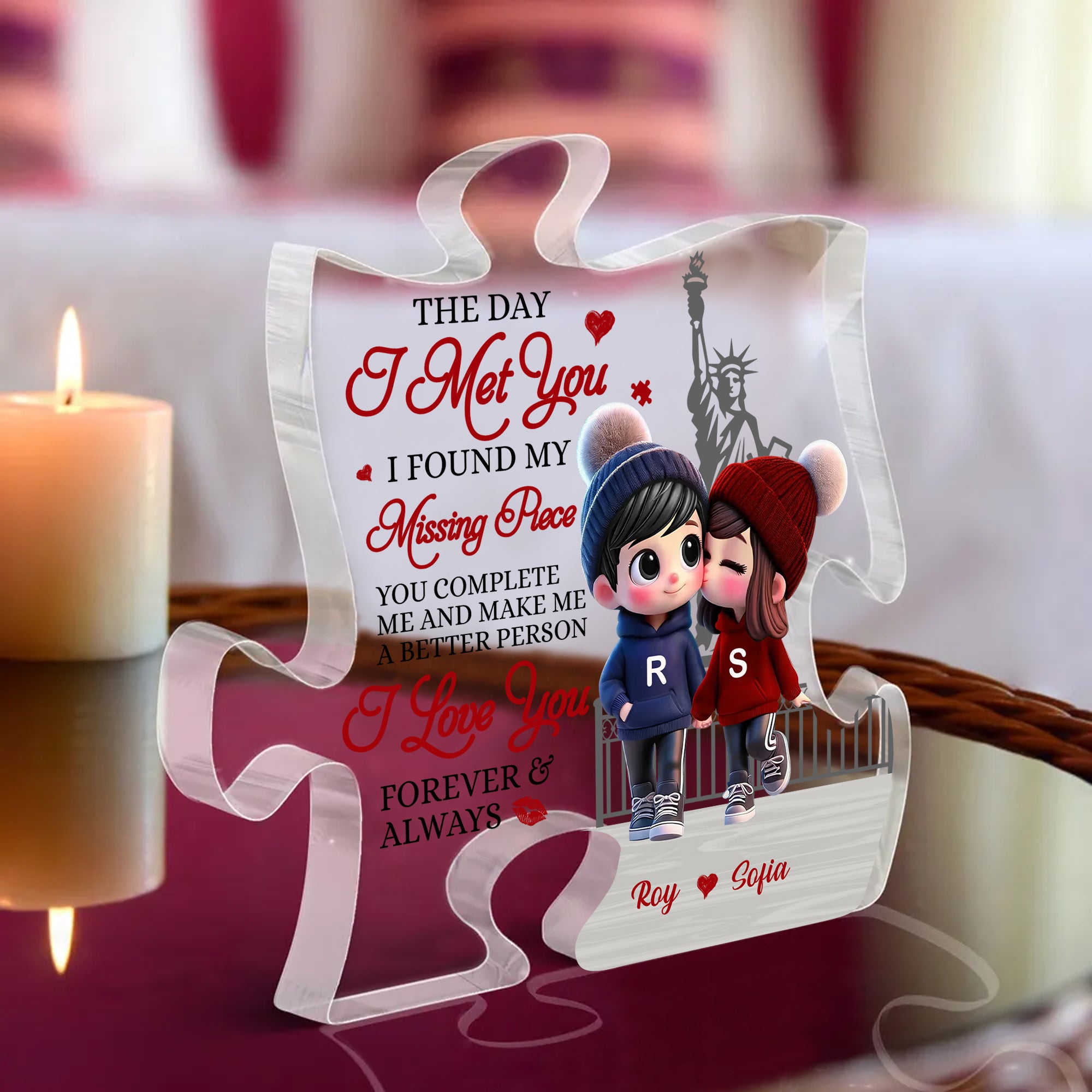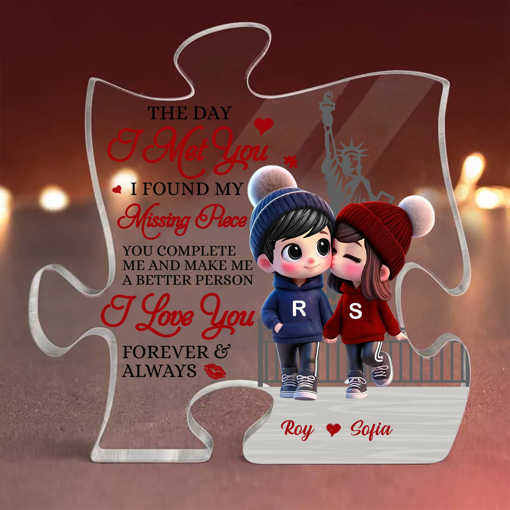 The Day I Met You Personalized Puzzle Shaped Acrylic Plaque, Valentine Gift For Couple