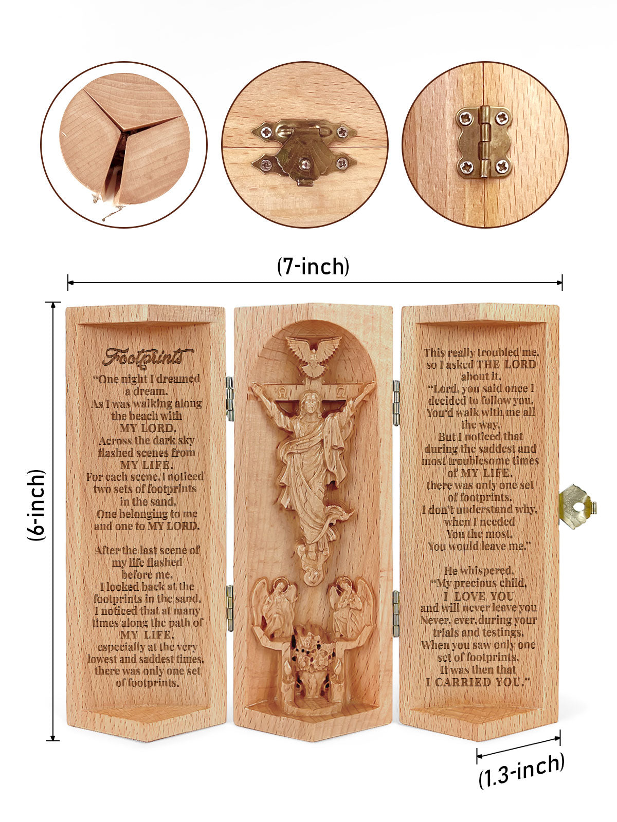 The Footprints, Jesus Openable Wooden Cylinder Sculpture of Jesus Christ, Christian Gifts