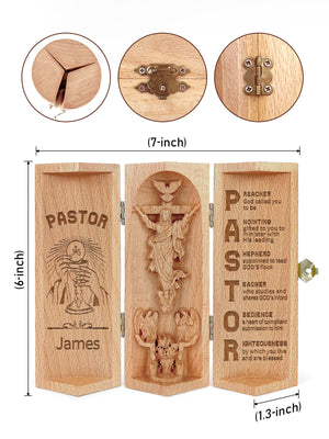 Product Description: Celebrate the dedication of pastors and spiritual leaders with this intricately crafted wooden cylinder sculpture of Jesus Christ. Designed with a unique openable feature, this piece reveals a heartfelt prayer for pastors inside, offering encouragement, inspiration, and blessings.