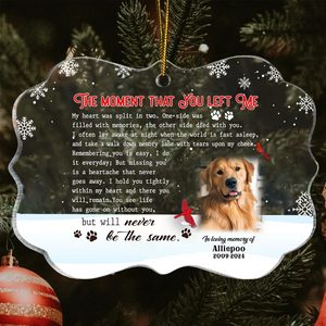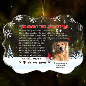 The Moment That You Left Me Custom Photo Memorial Christmas Acrylic Ornament, Gifts For Loss Of Dog