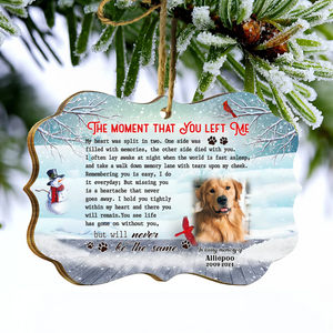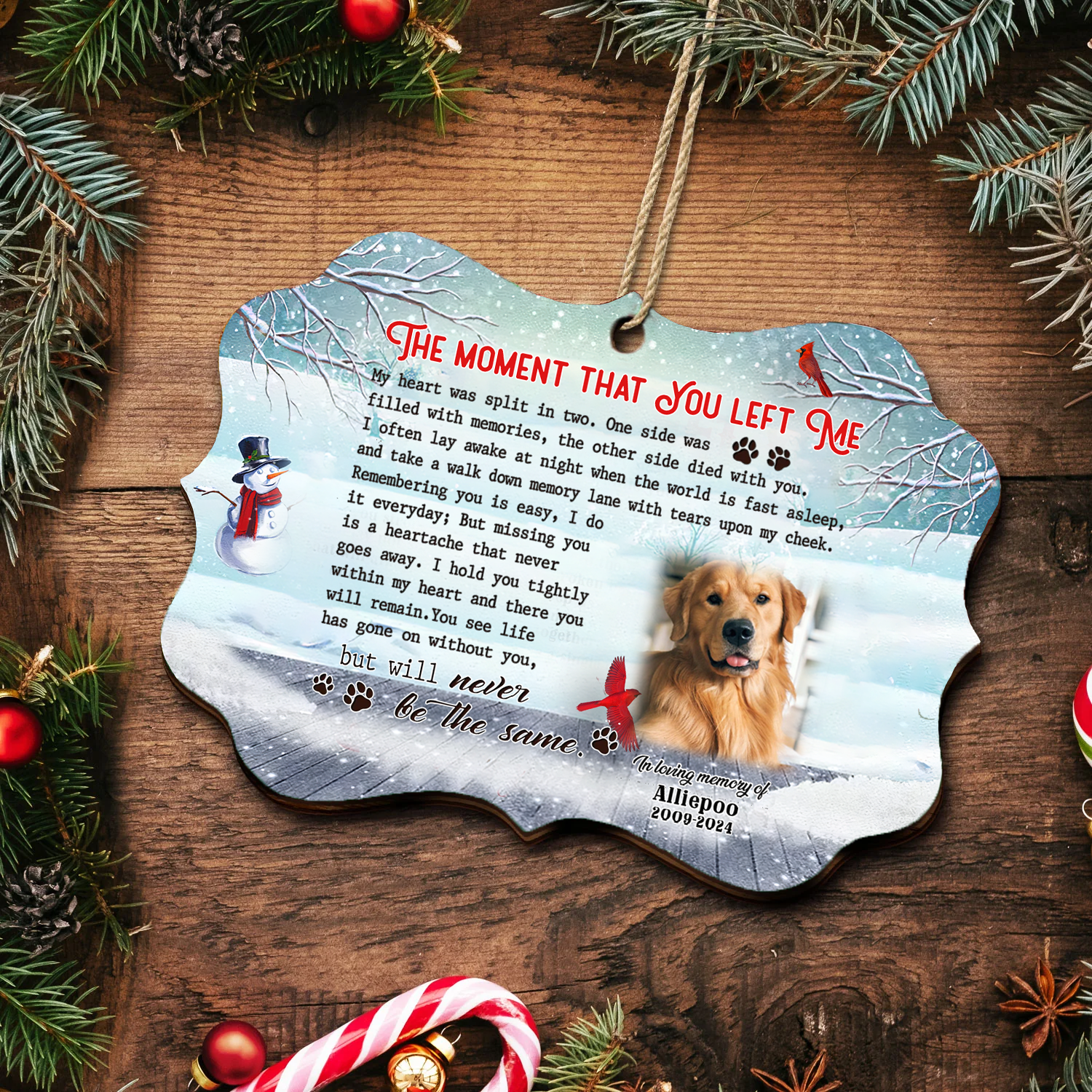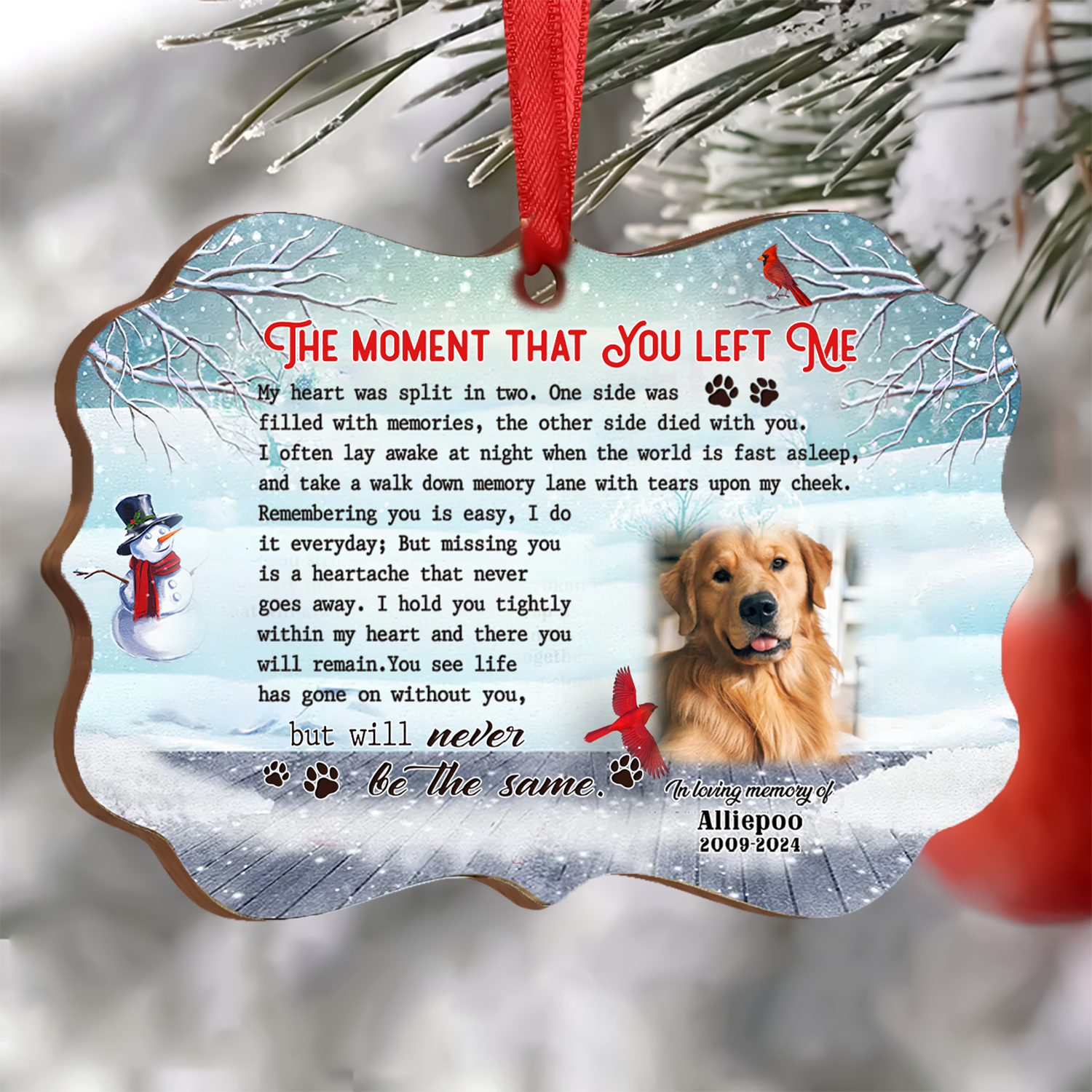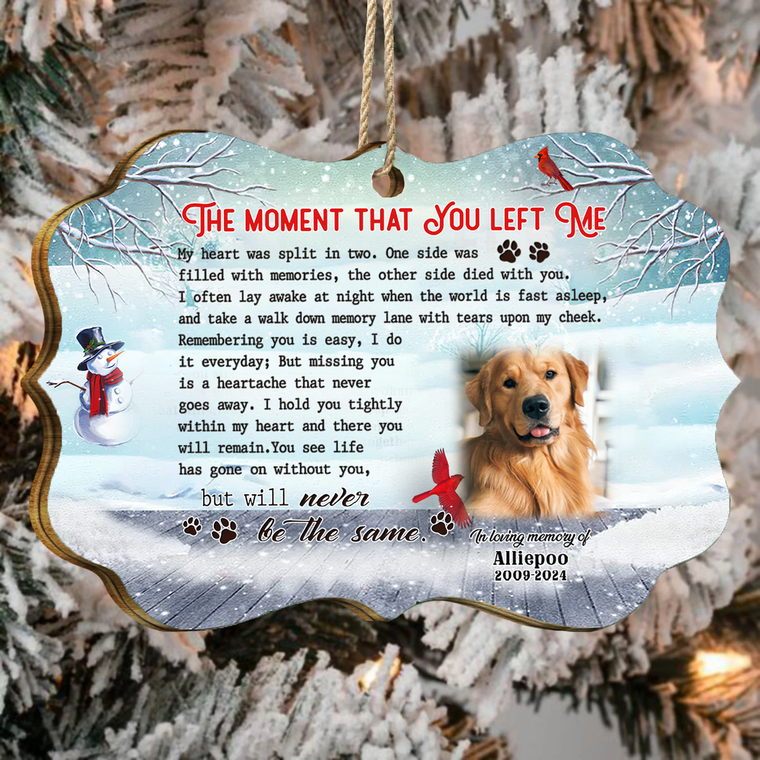 The Moment That You Left Me Custom Photo Memorial Christmas Wood Ornament, Gifts For Loss Of Dog