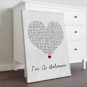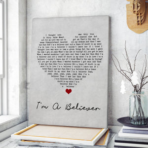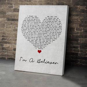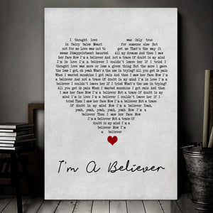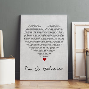 The Monkees I'm A Believer Grey Heart Song Lyric Wall Art Print Personalised Lyrics Poster Wrapped Canvas Frame Gift Wall Art Custom Print