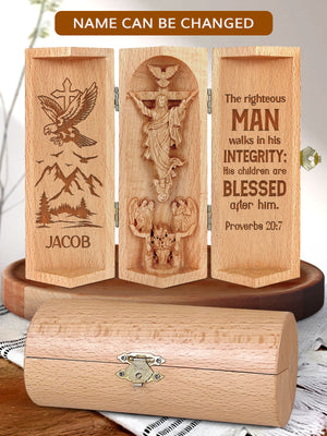 The Righteous, Openable Wooden Cylinder Sculpture of Jesus Christ, Christ Decor