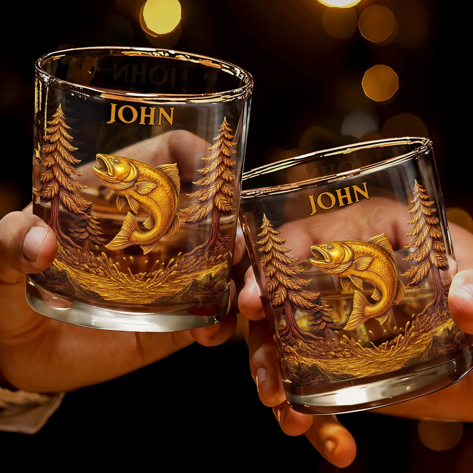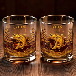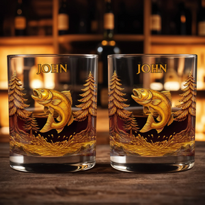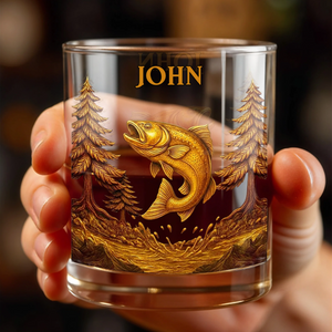 The Spirit Of Nature And Adventure, Tree And Fish Personalized Custom Whiskey Glass, Gift For Dad And Nature Lovers