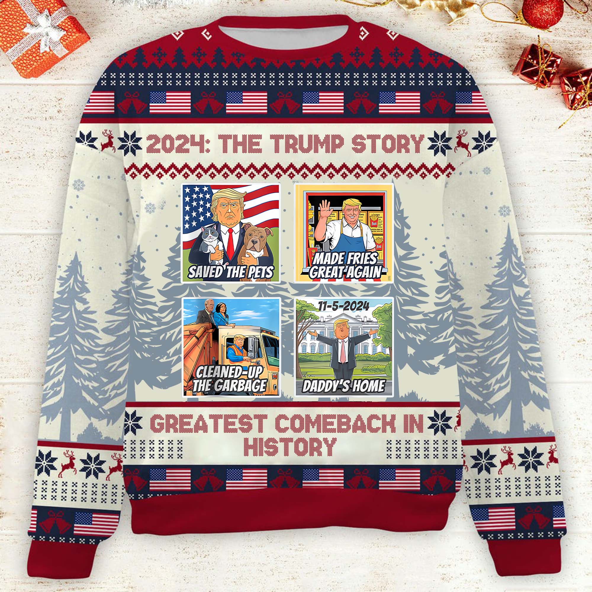 The Trump Story Funny Humorous Trump2024 Christmas Ugly Sweater, Funny Political Shirts