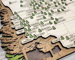 With our custom engraved badge, your wood map becomes a one-of-a-kind storyteller - marking your family name and the beginning of countless outdoor journeys through America's most beautiful parks.