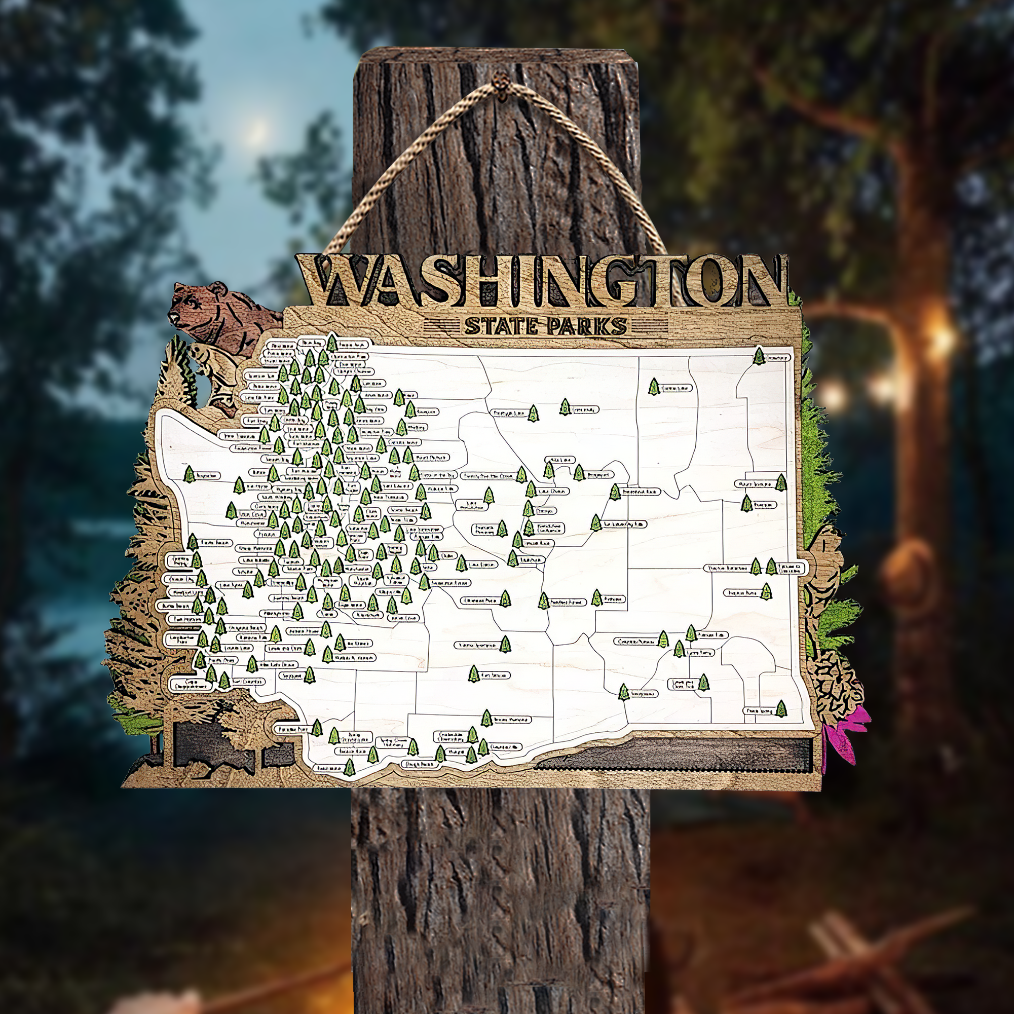 The Washington State Park Map, Personalized Travel Map, Gift For Travelers