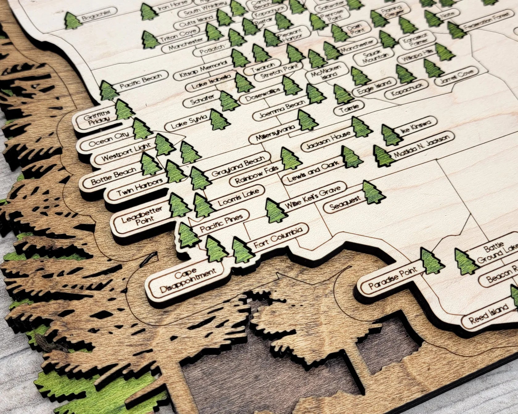 Embark on a journey through the beauty of America's state parks with the Washington State Park Explorer Map. This handcrafted map is your canvas to showcase the diverse landscapes and adventures you have experienced. With a captivating outdoor theme background featuring everything your state has to offer, each map can be customized by adding a family name, creating a unique reflection of your outdoor exploration. This customization makes it an ideal gift or cherished family keepsake.