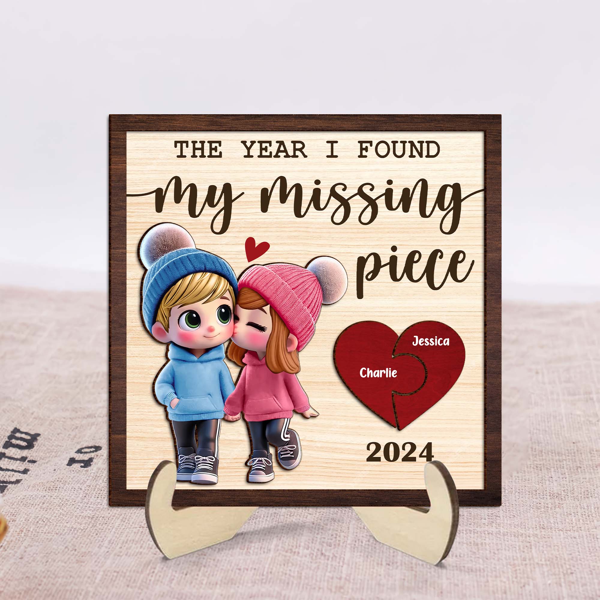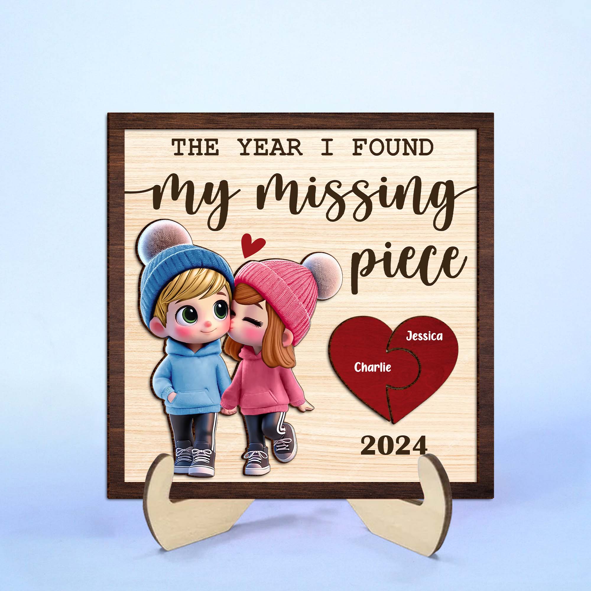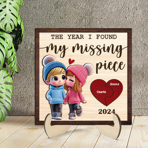 The Year I Found My Missing Piece 2-Layered Custom Wood Sign, Valentines Gifts For Couple