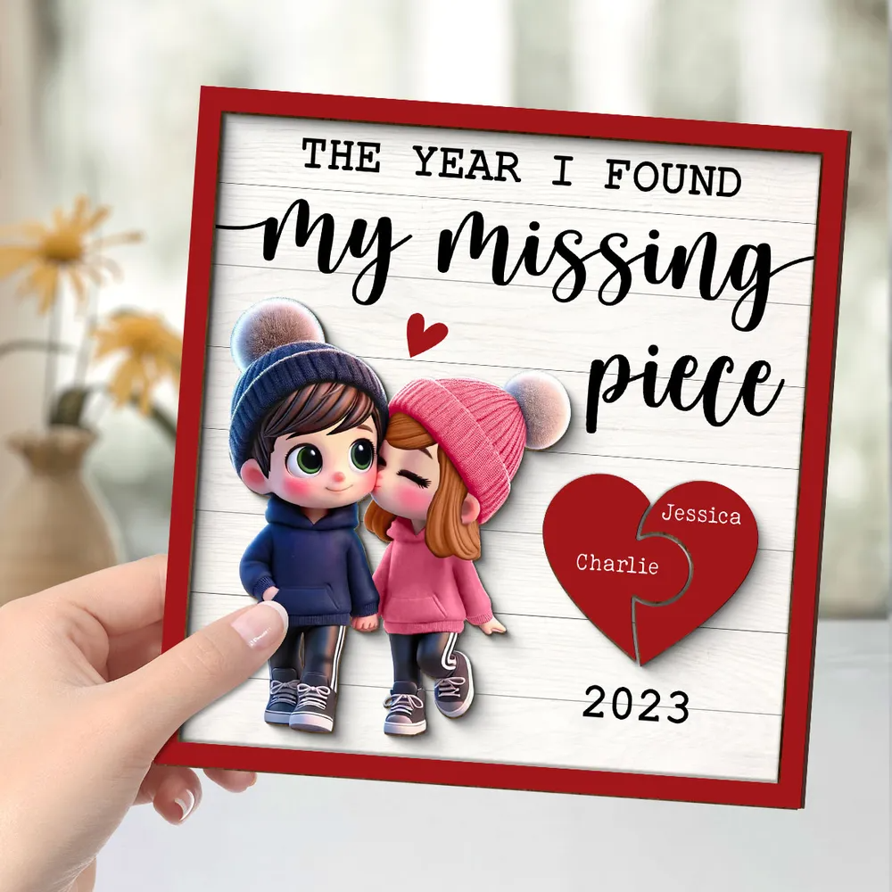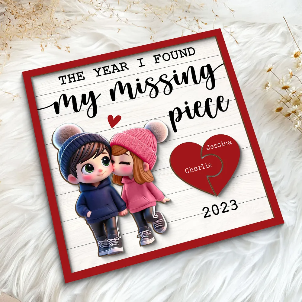The Year I Found My Missing Piece 2-Layered Wood Sign, Cute Couple Gift, Valentines Gifts For Couple