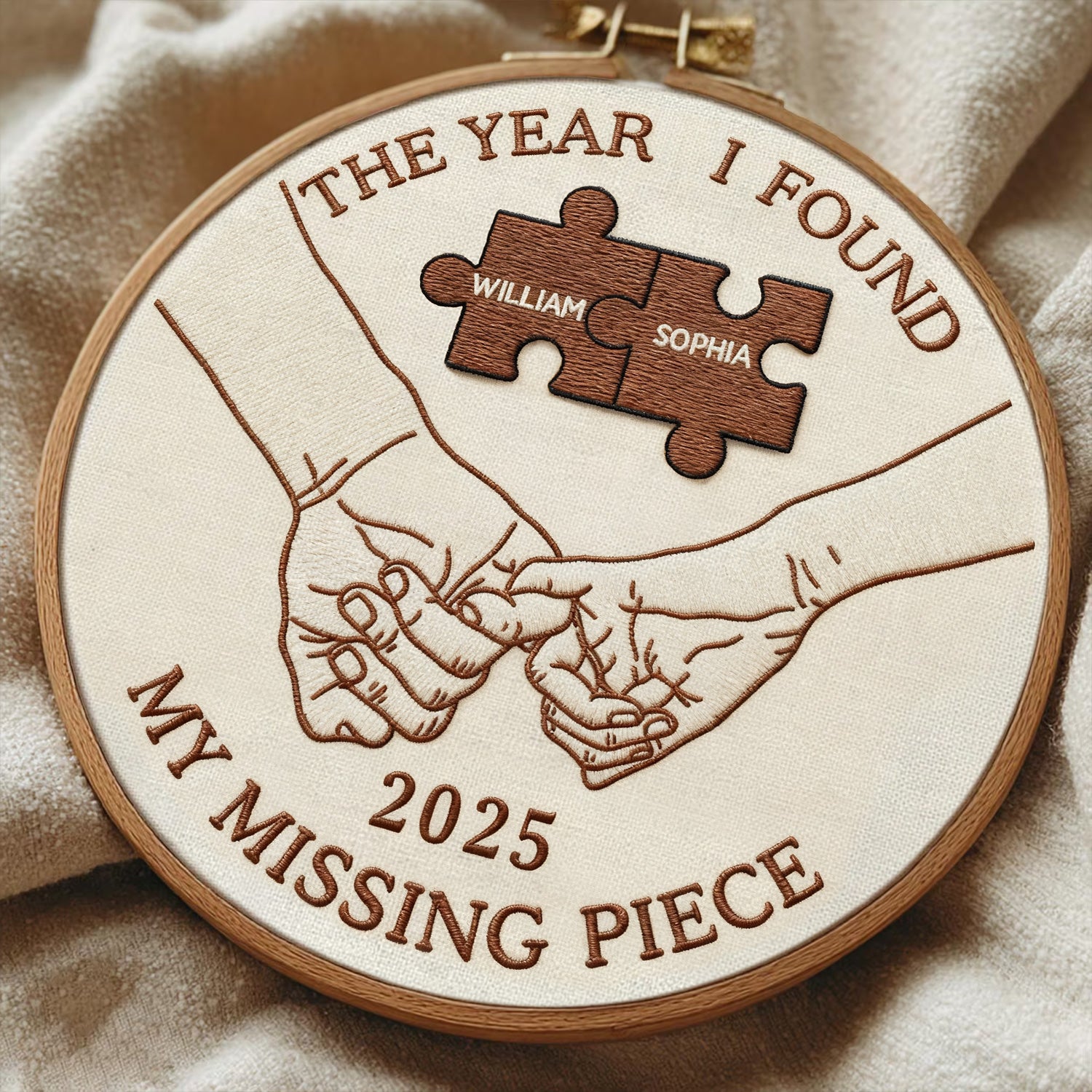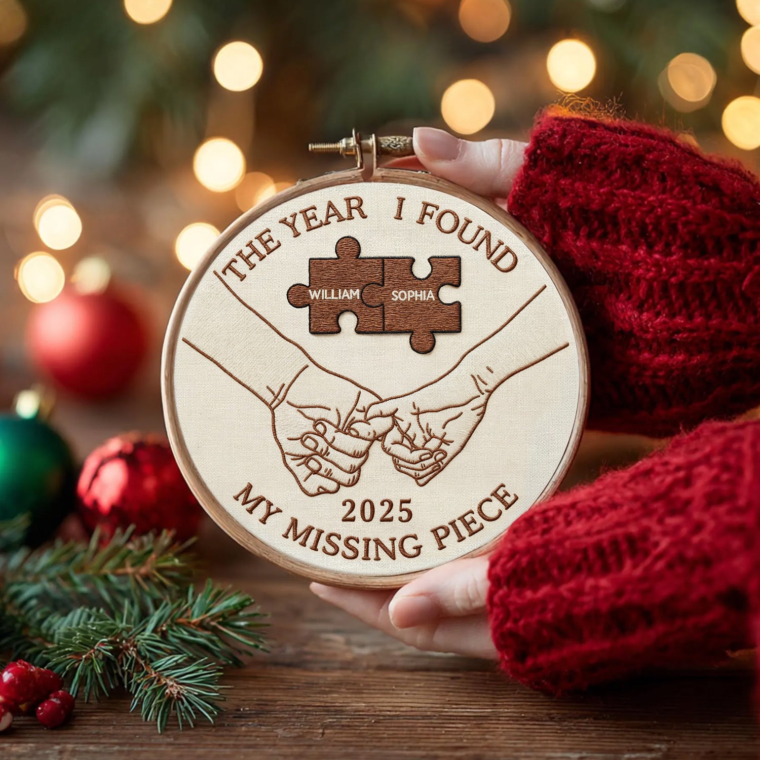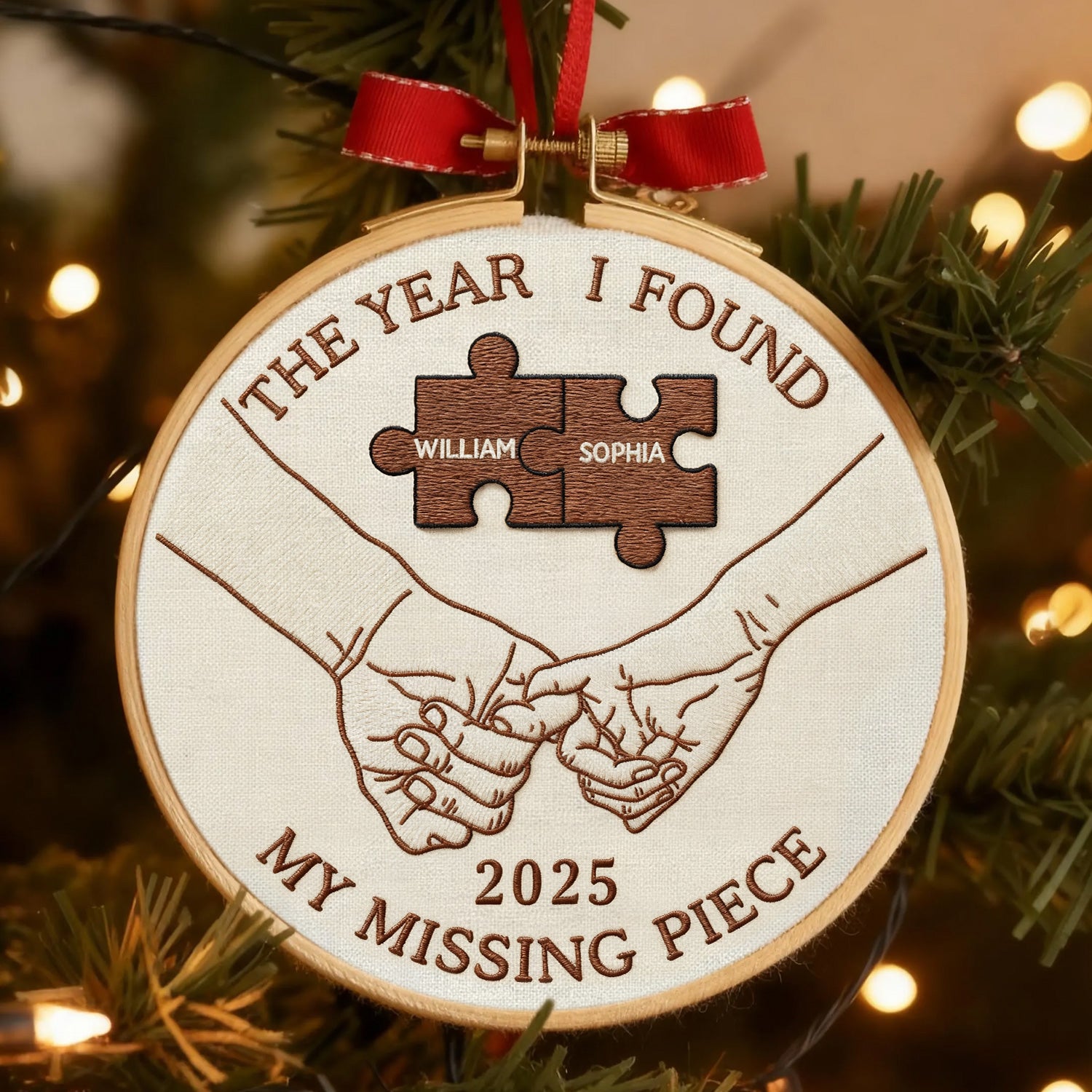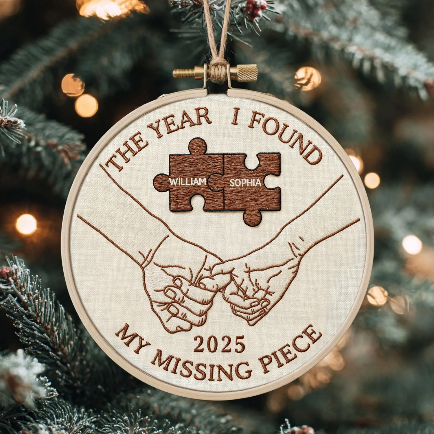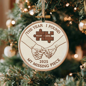 The Year I Found My Missing Piece Embroidery Hoop Ornament, Couple Christmas Ornament, Newly Wed Gift