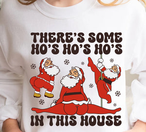 Celebrate the holiday season in style with the Santa Claus Christmas Sweatshirt. Featuring a playful “There Some Ho's Ho's Ho's In This House” design, this cozy sweatshirt is ideal for showing off love for your lovers during the most wonderful time of the year.