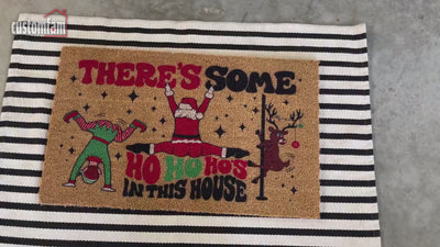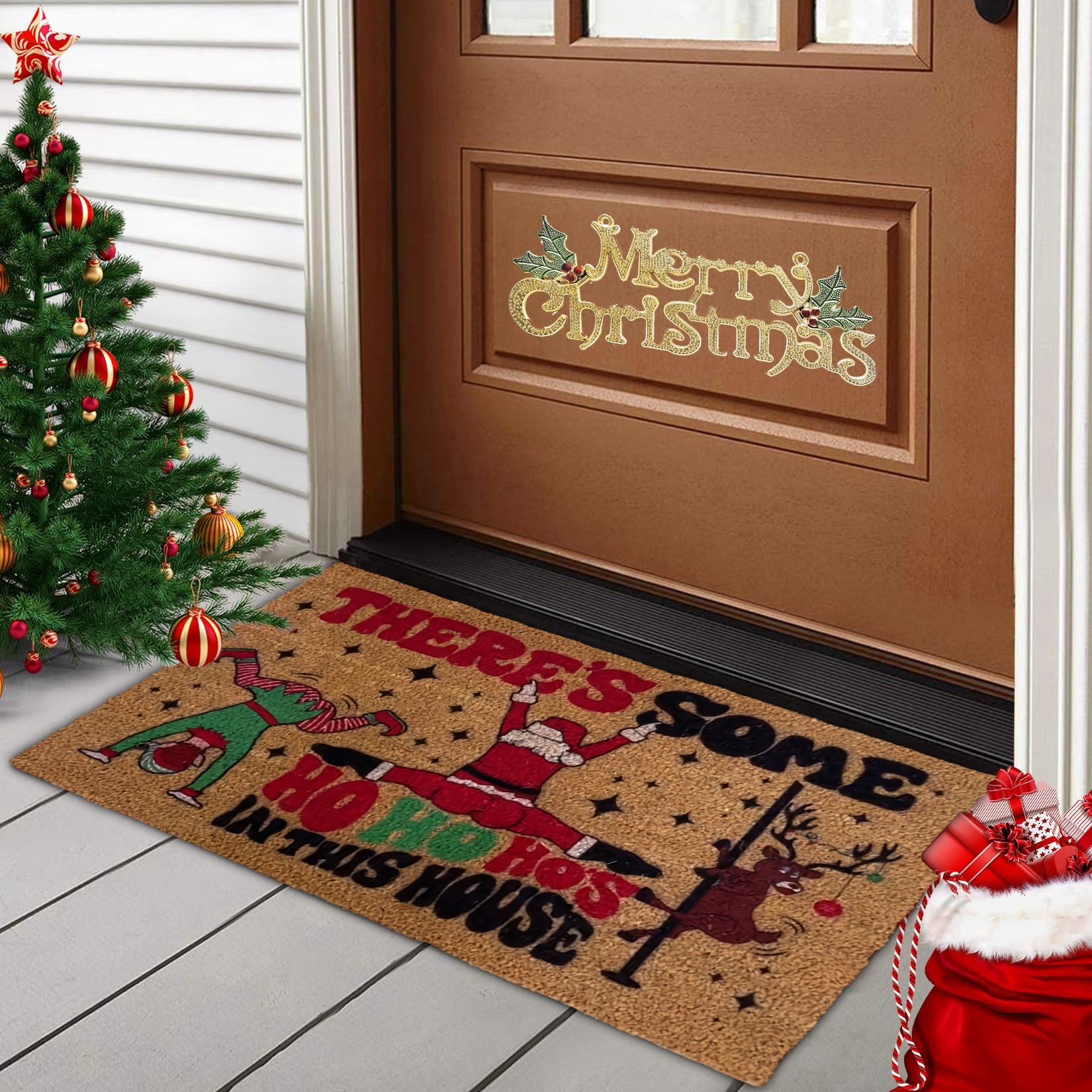 - Design: The doormat showcases a dancing or twerking Santa with the phrase "There's Some Ho Ho Ho's In This House", making it an instant conversation starter and adding a quirky festive touch to your doorstep.