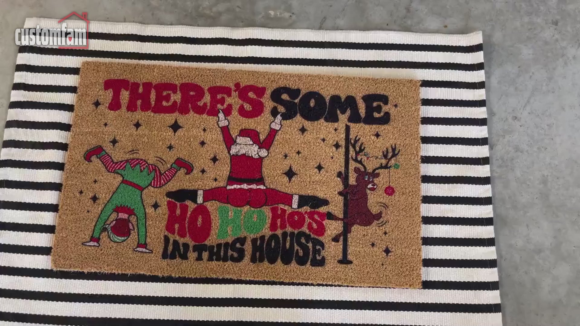 "There's Some Ho Ho Ho's In This House" Doormat is a fun and festive holiday accessory that brings humor to your Christmas decor. This doormat features a playful twist on traditional holiday greetings, combined with a hilarious image of a twerking Santa, adding a light-hearted and cheeky vibe to your entryway.
