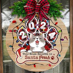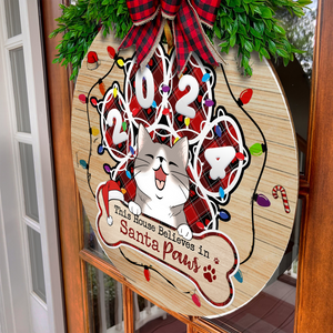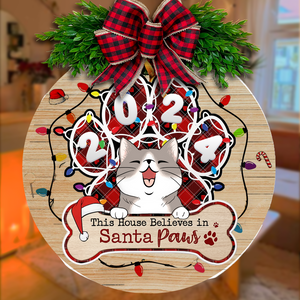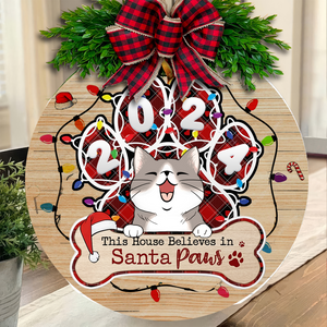This House Believes In Santa Paws Personalized Christmas Wood Sign, Gifts For Cat Lovers