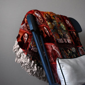 Unique Gifts: Looking for the perfect gift for the horror fan in your life? This personalized woven blanket is a thoughtful and practical gift for Halloween, Christmas, or birthdays.