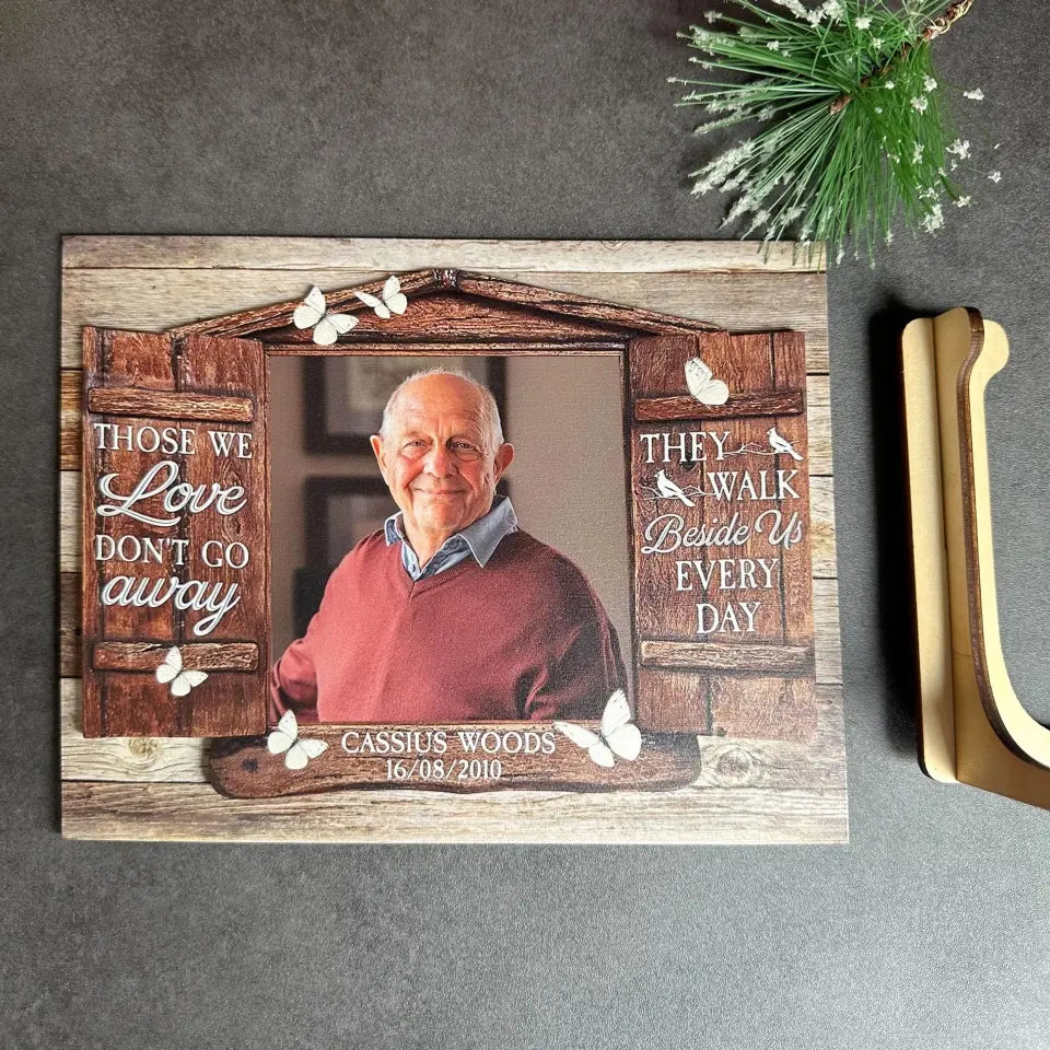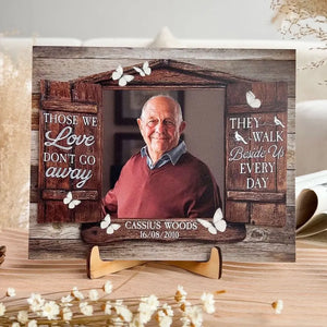 Those We Love Don't Go Away Personalized Wooden Photo Plaque, Memorial Gifts