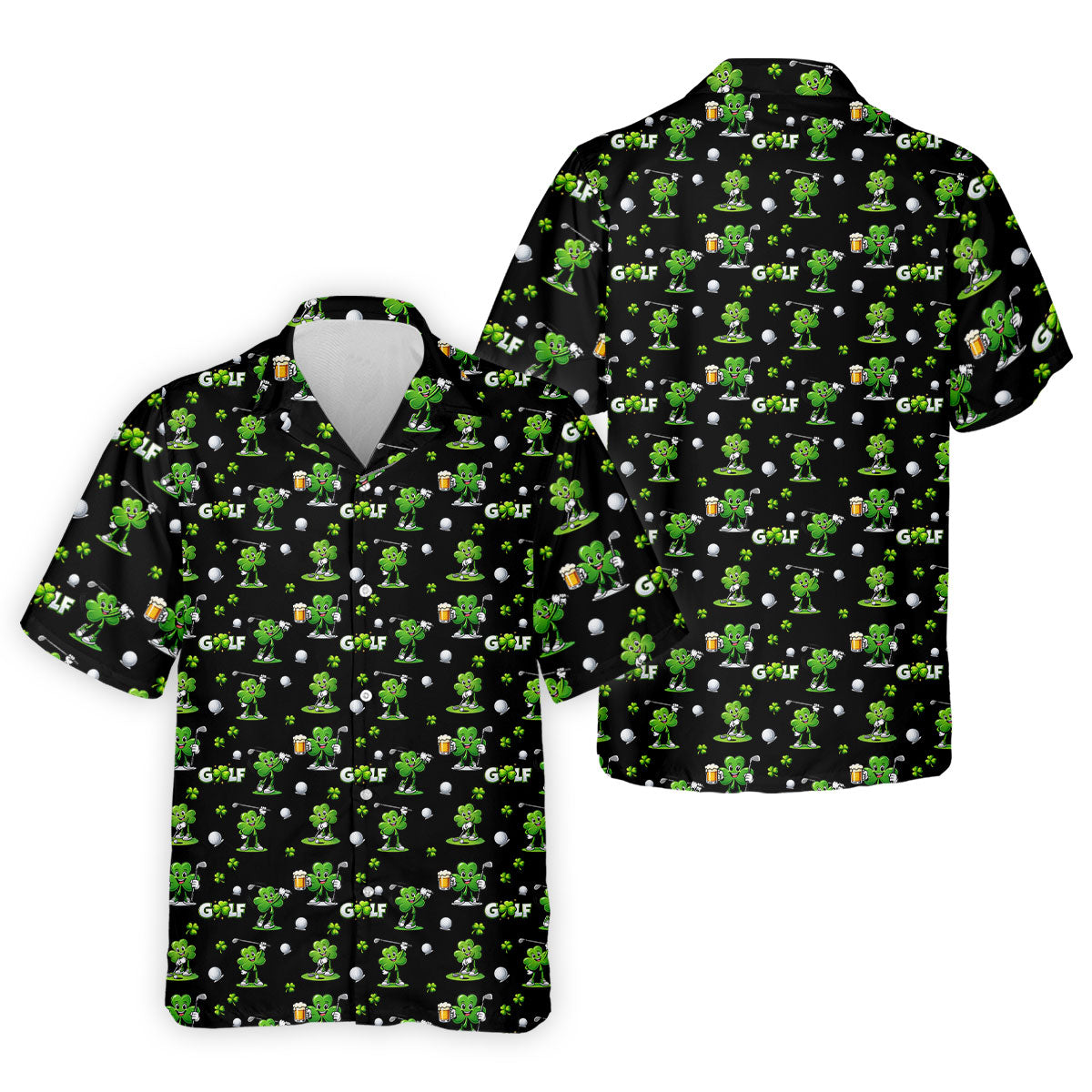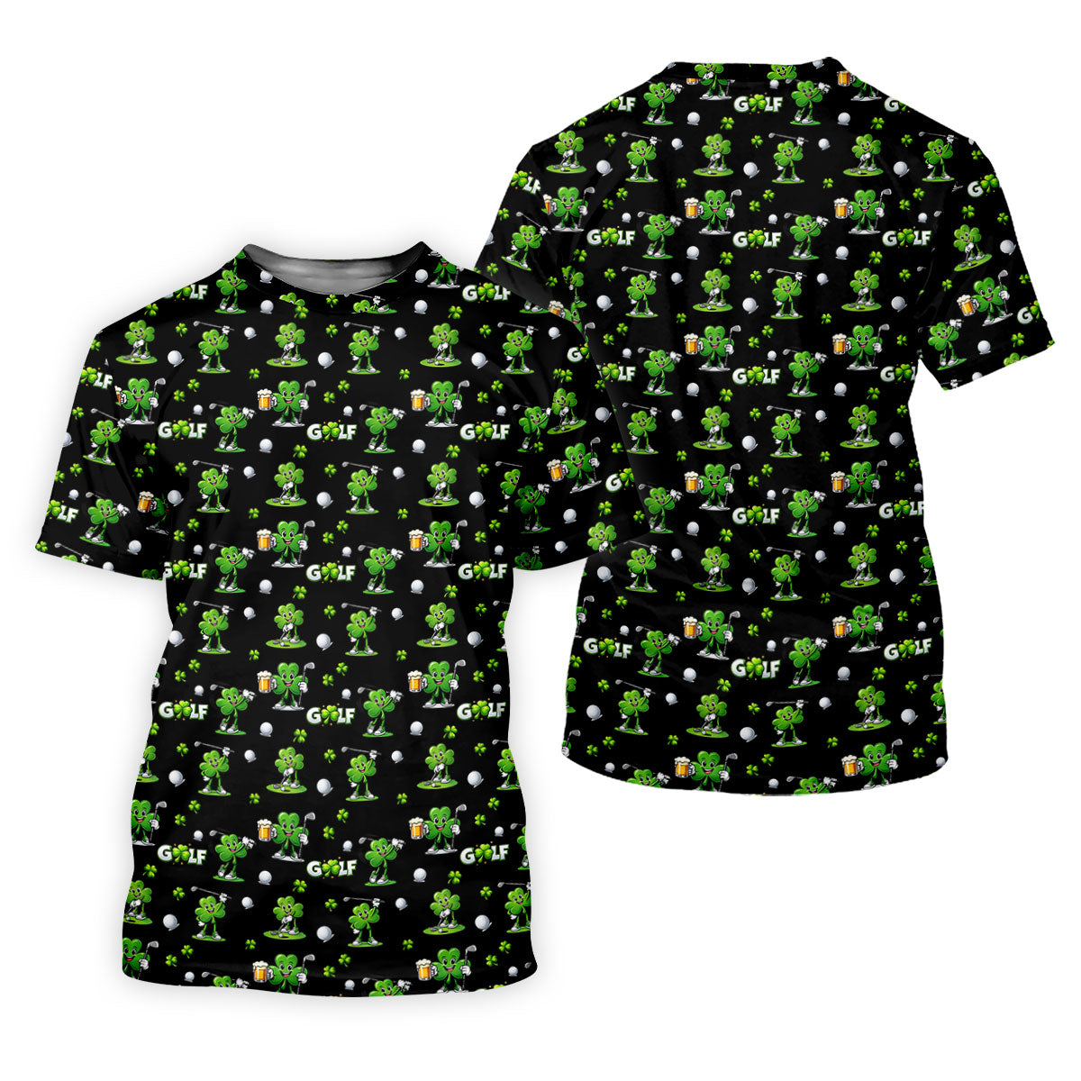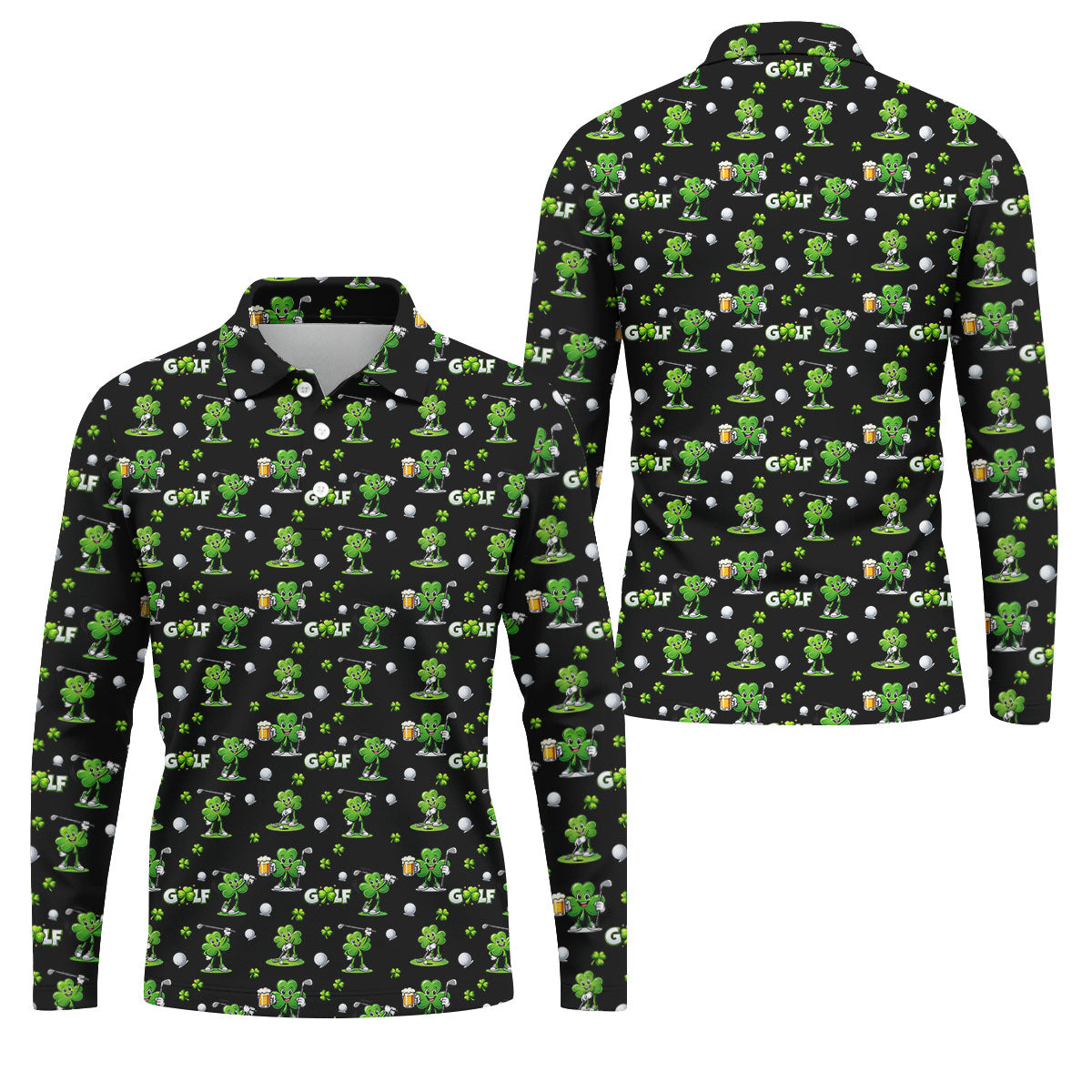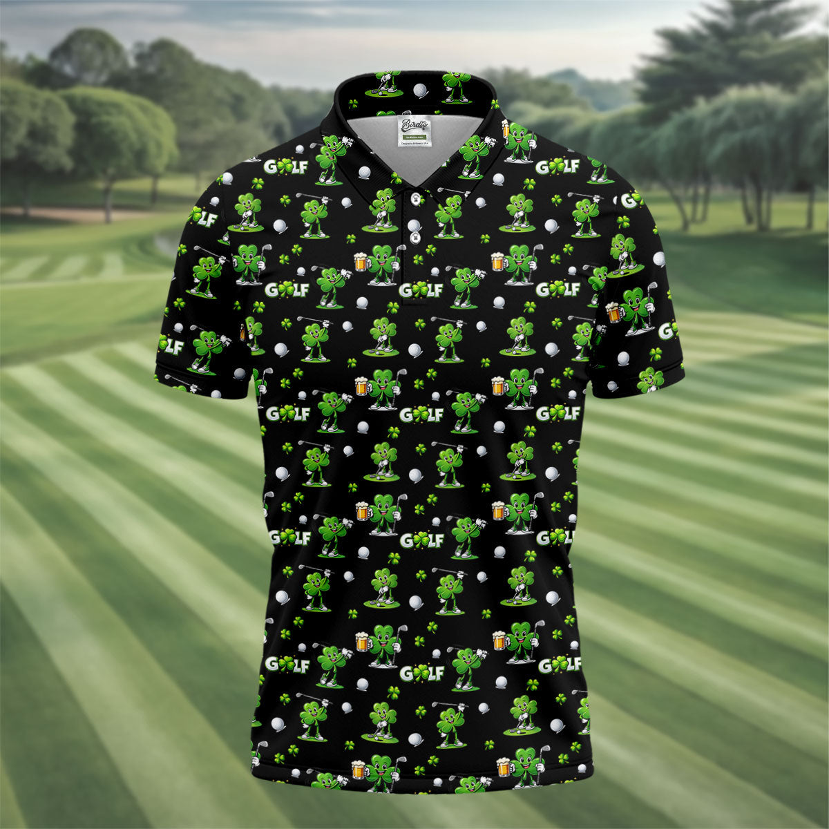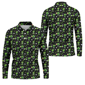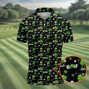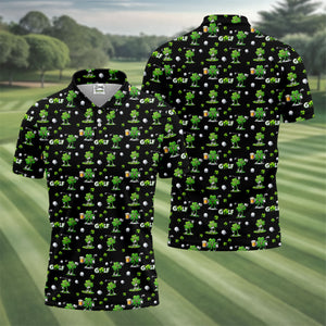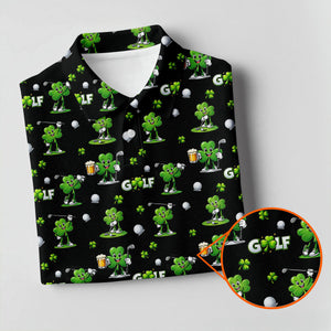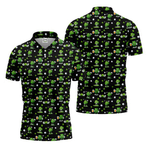 Three Leaf Clover Golf And Beer St Patrick's Day Black Golf Shirt, Fun Golf Shirts For Men, Polo Shirts For Men