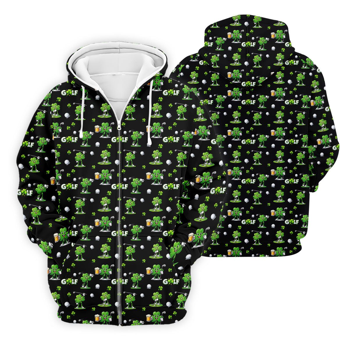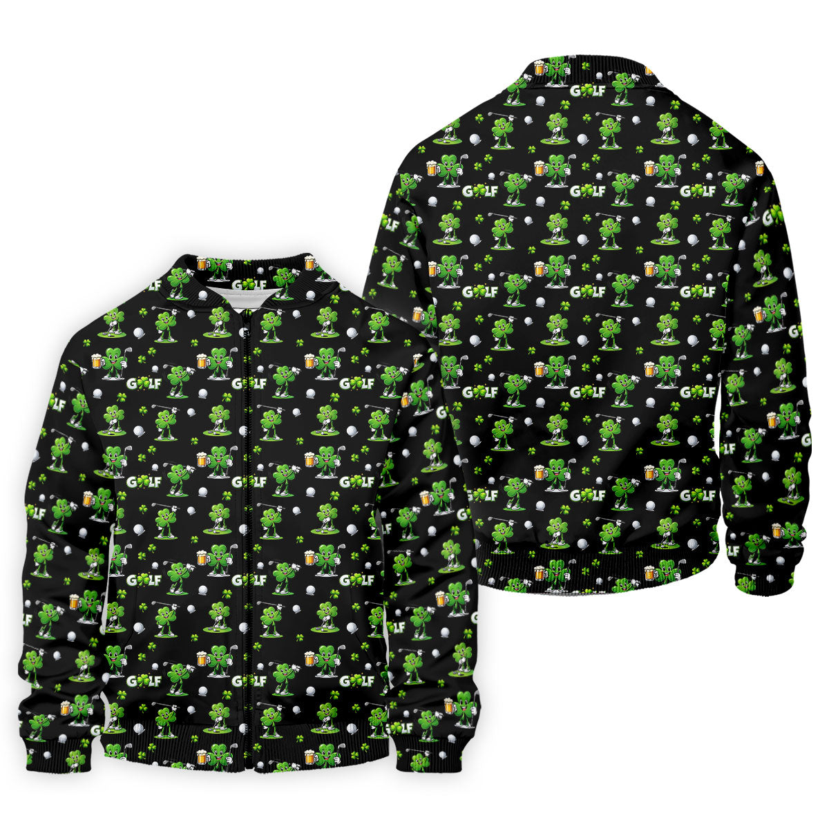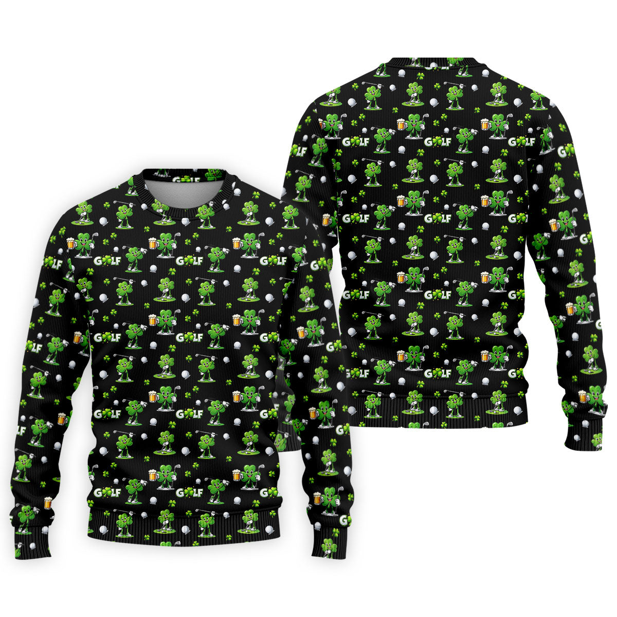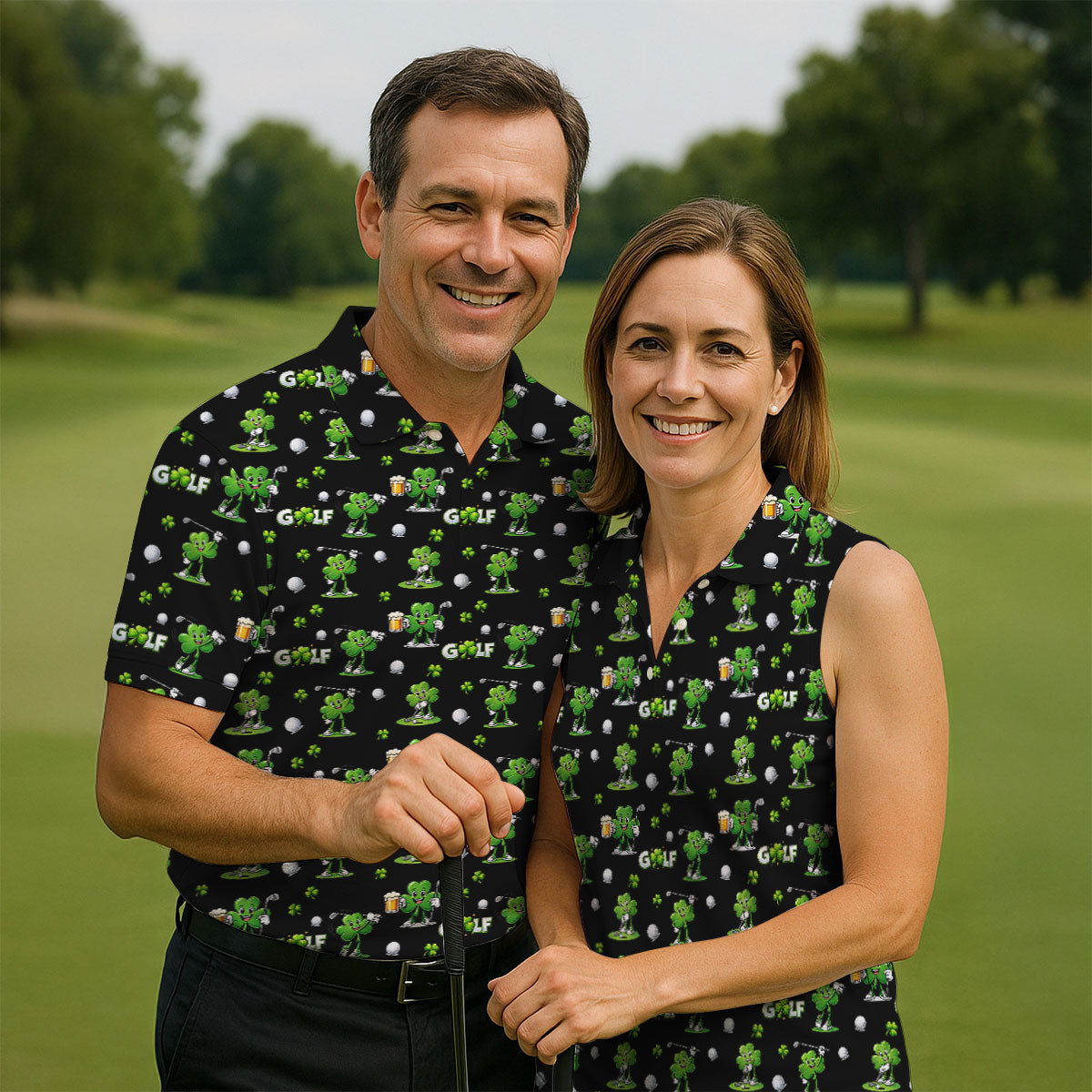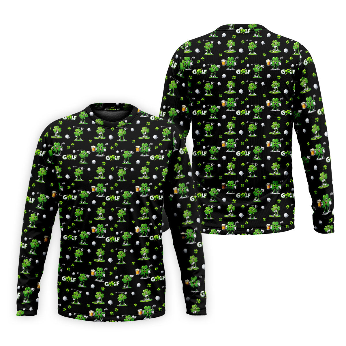 Three Leaf Clover Golf And Beer St Patrick's Day Black Golf Shirt, Fun Golf Shirts For Men, Polo Shirts For Men
