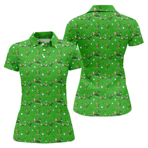 Three Leaf Clover Golf And Beer St Patrick's Day Green Golf Shirt, Women's Golf Shirts, Ladies Golf Polos