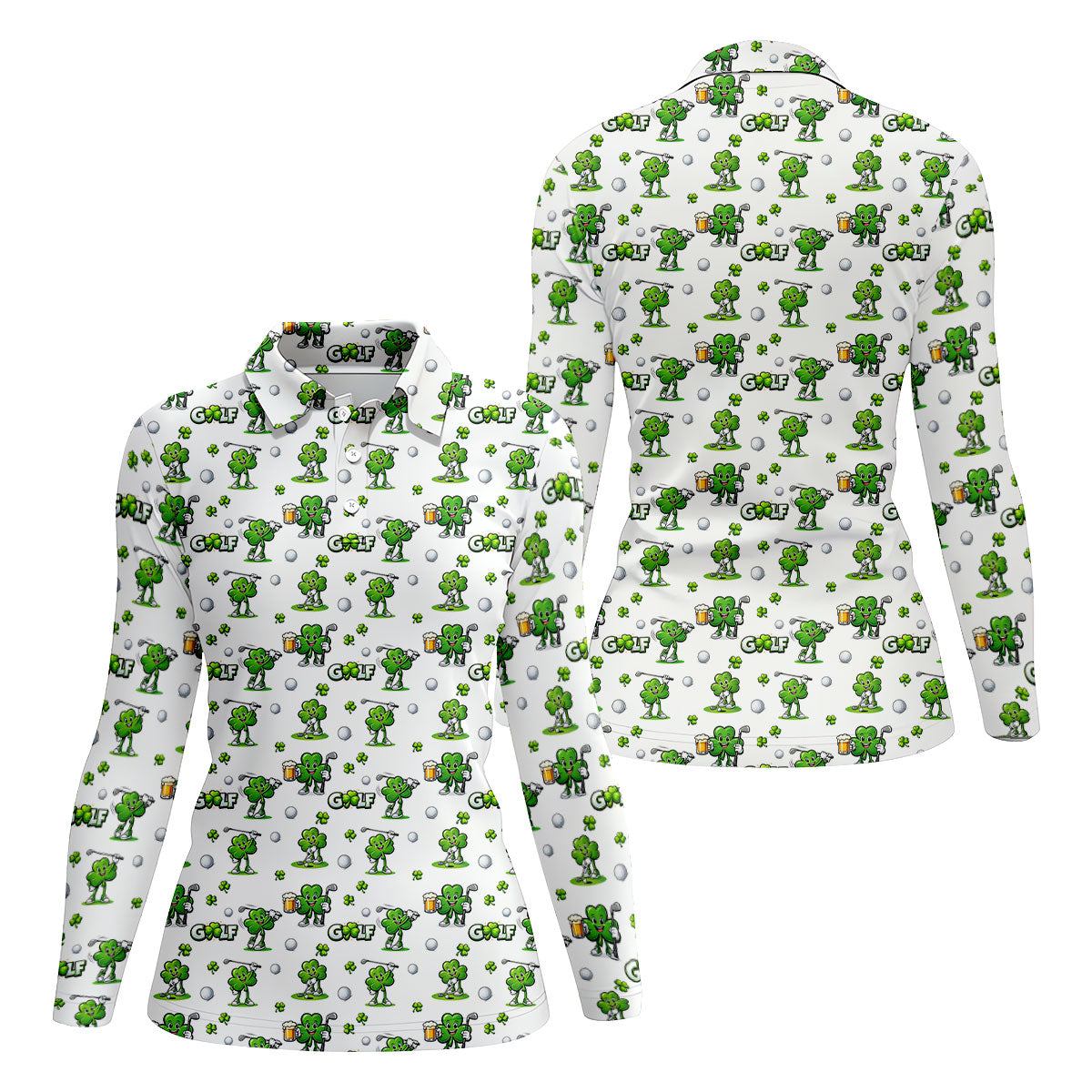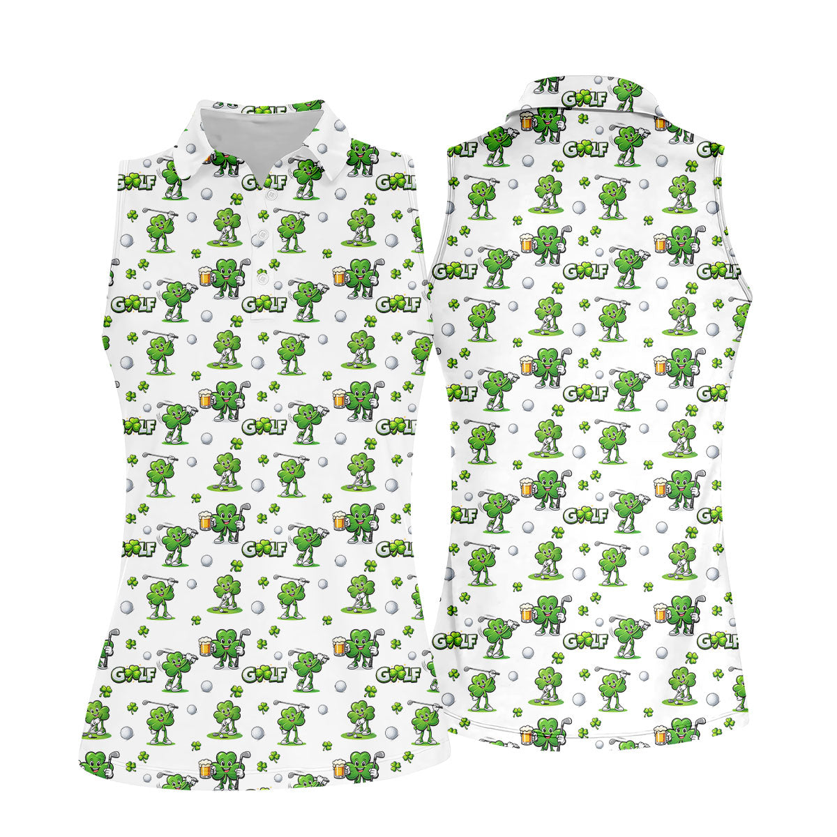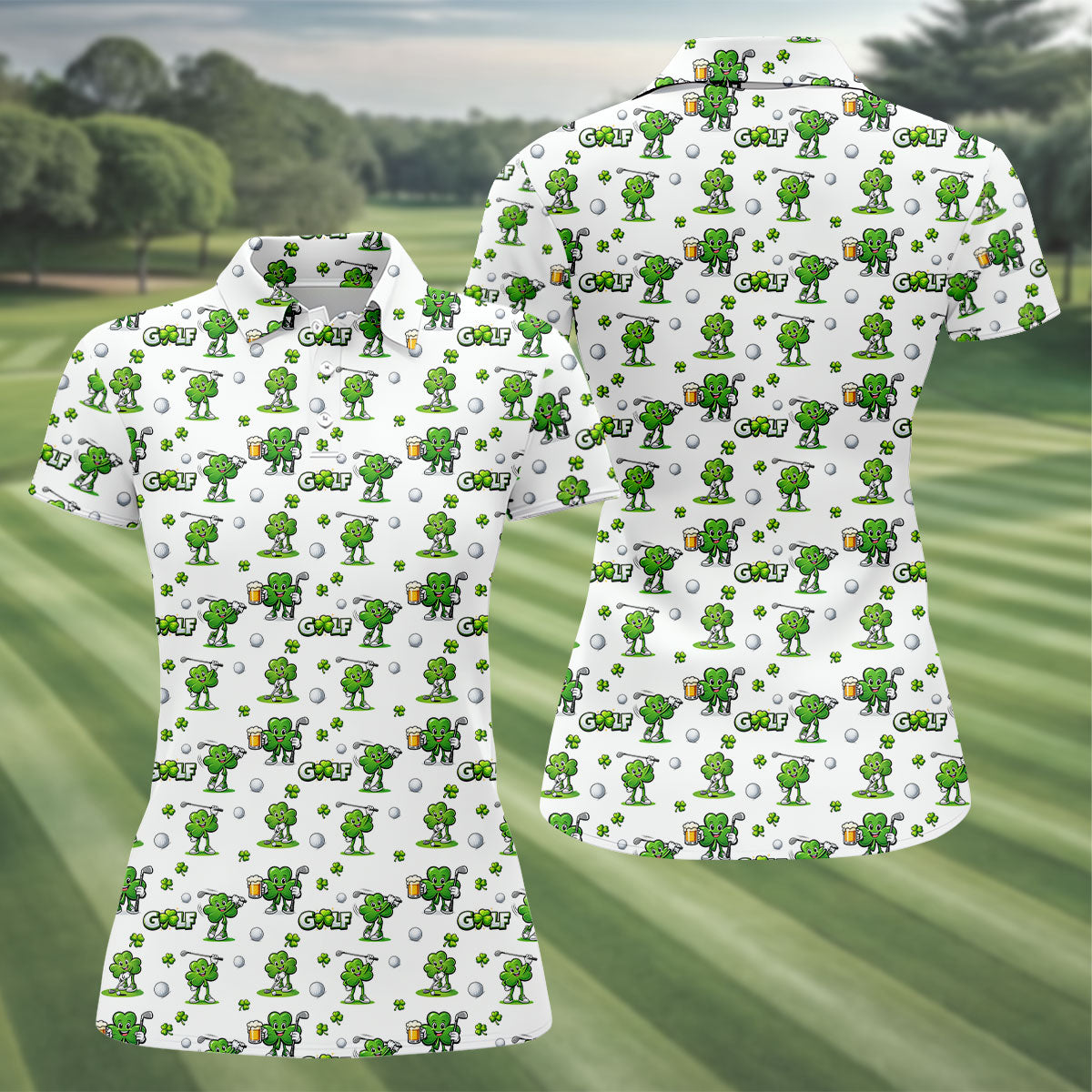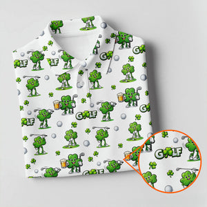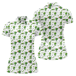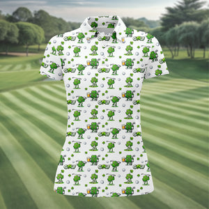 Three Leaf Clover Golf And Beer St Patrick's Day White Golf Shirt, Women's Golf Shirts, Ladies Golf Polos
