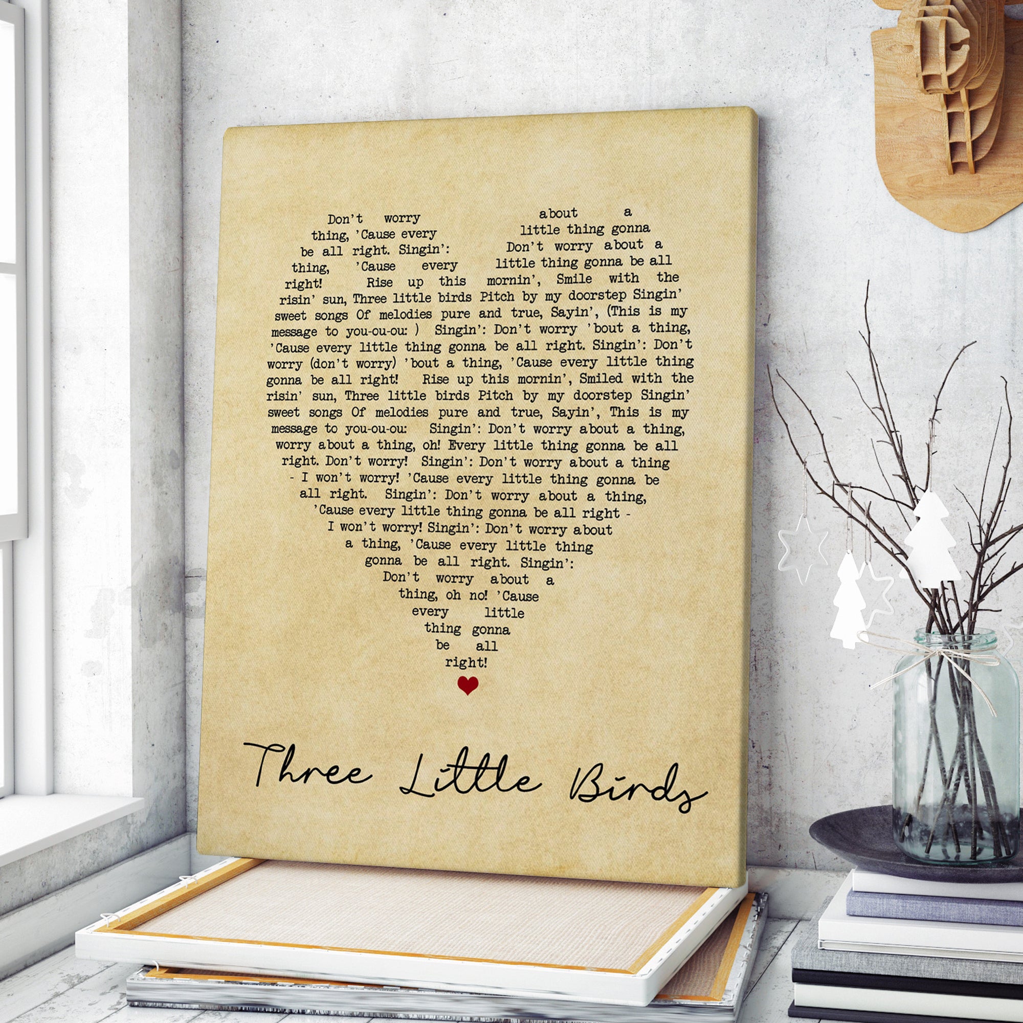 Three Little Birds Bob Marley Vintage Heart Quote Song Lyric Art Print Canvas Print Frames