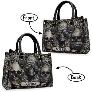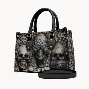 Three Wise Skulls - Personalized Skull Leather Handbag - Boho Handbag - Leather Shoulder Bag