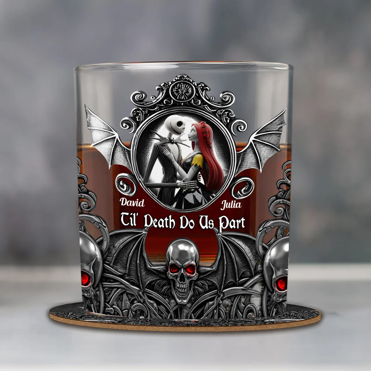 Til Death Do Us Part Custom Whiskey Glass, Horror Couple Personalized Whiskey Glasses