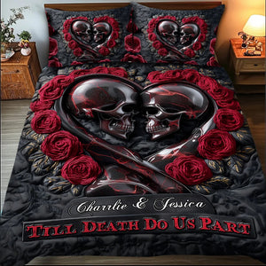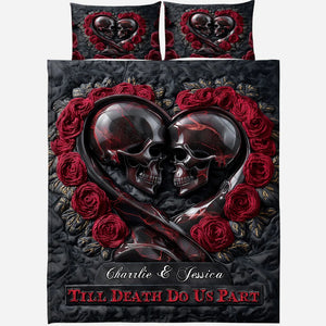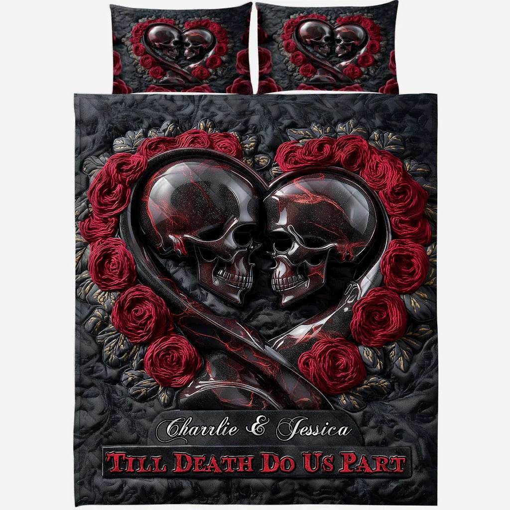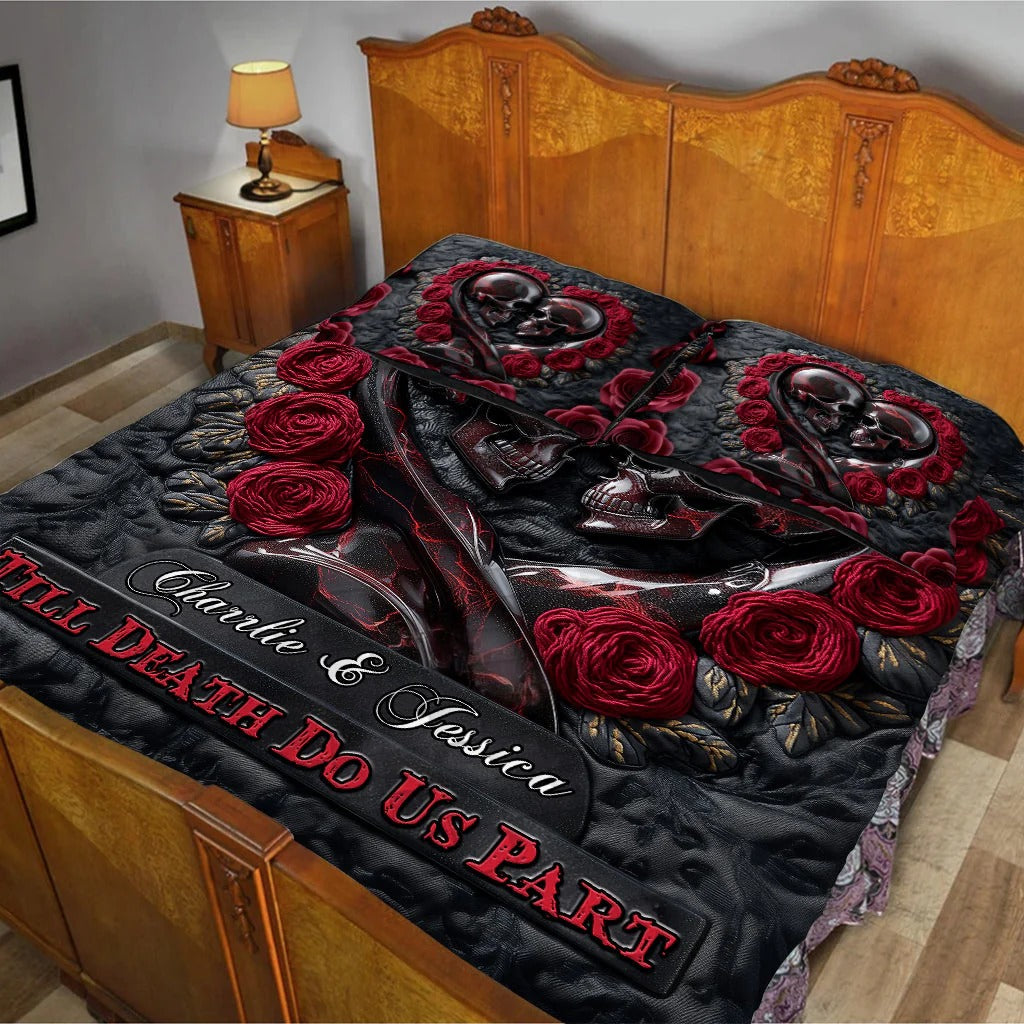 Till Death Do Us Part, Personalized Skull Quilt Set, Couple Valentine Gift, Valentine's Day Ideas