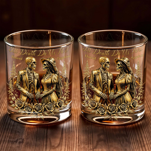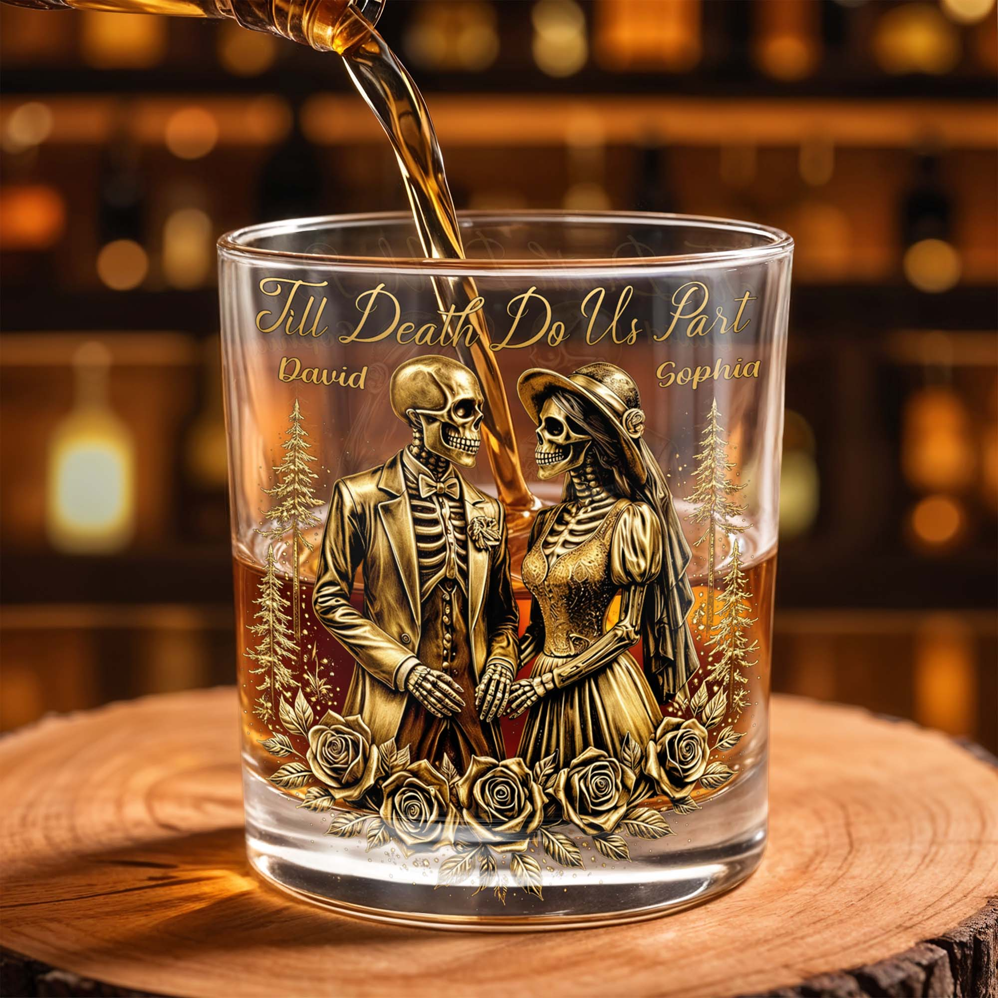 Till Death Do Us Part With Skeleton Couple And Roses, Custom Whiskey Glass, Gift For Spouse
