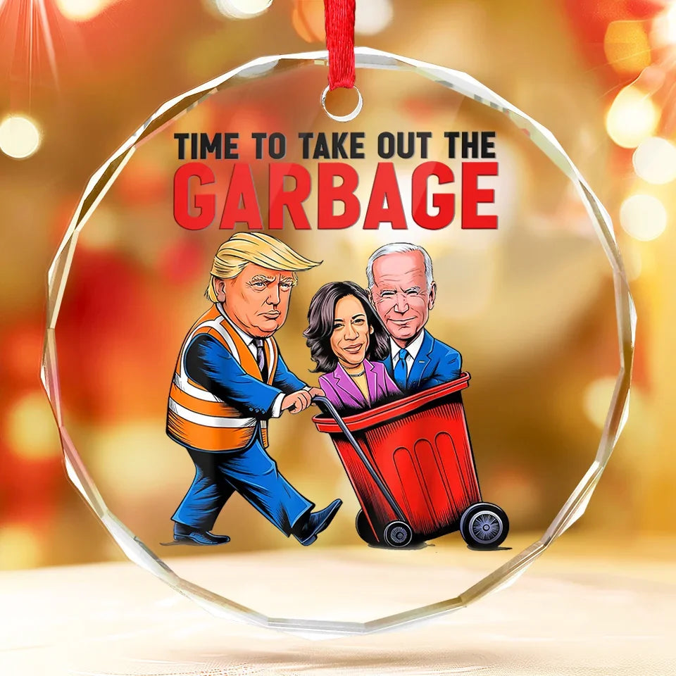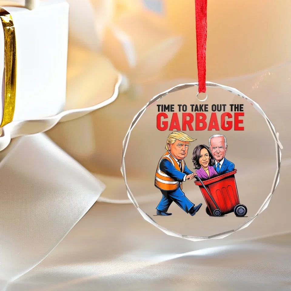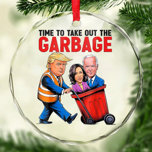 Time To Take Out The Garbage Trump2024 Glass Christmas Ornament, Funny Political Ornament