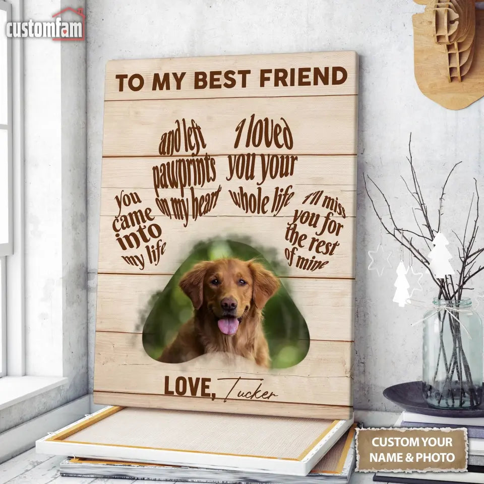 To My Best Friend Thank You For Loving Me Dog Paw Memorial Canvas Print