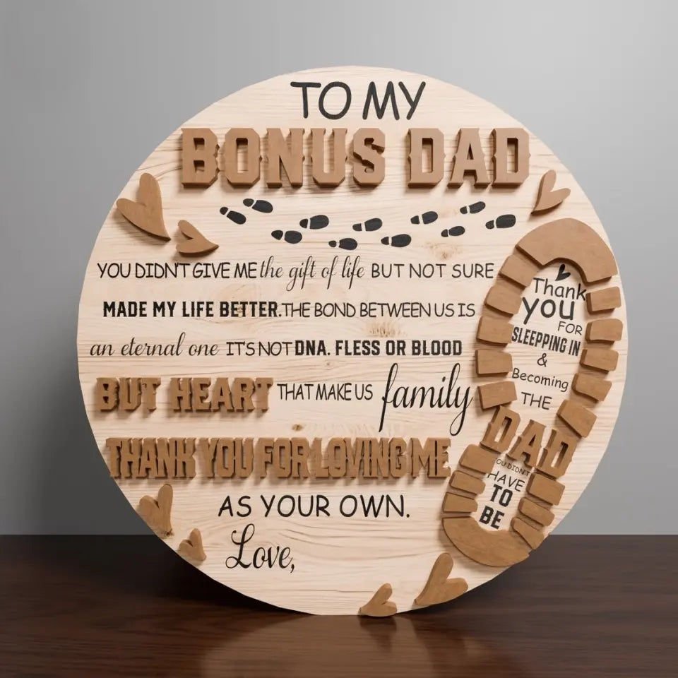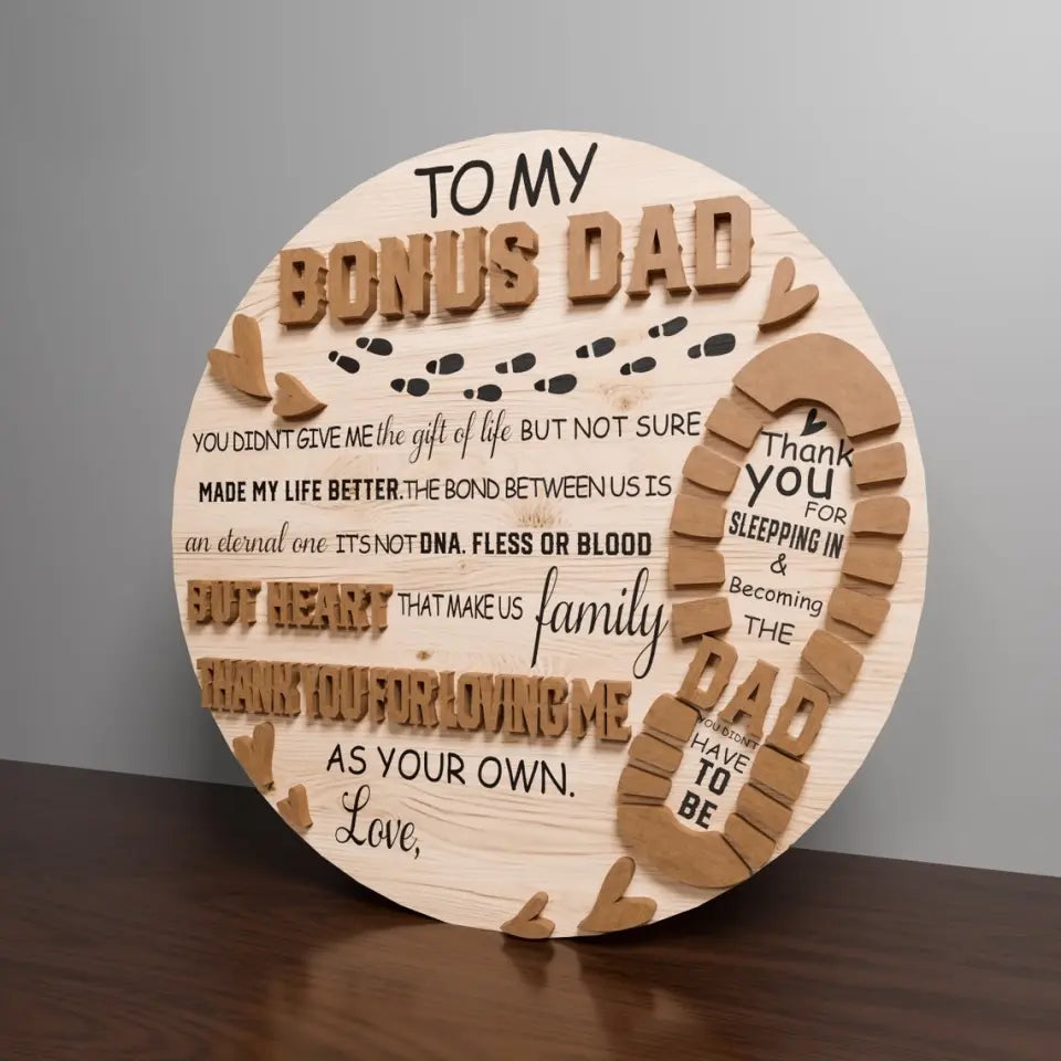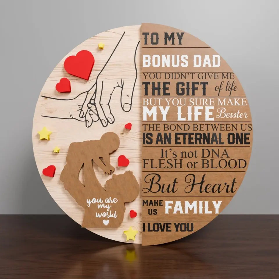 To My Bonus Dad Personalized 2 Layered Wooden Sign, Father’s Day Sign, Gifts For Dad